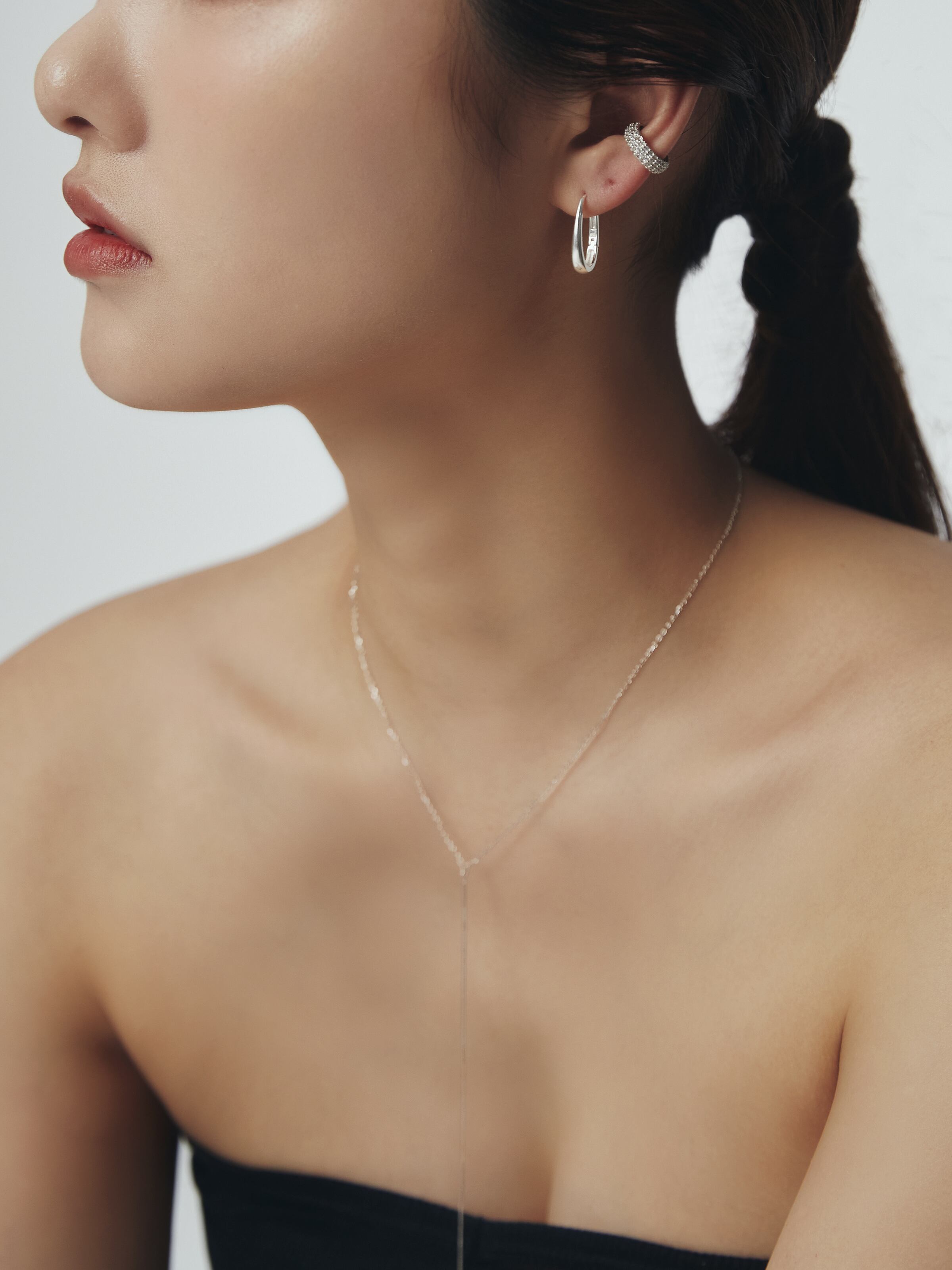 すっきりとしたラインで耳元を品よく引き立て、シンプルながらも洗練された印象を与えます。