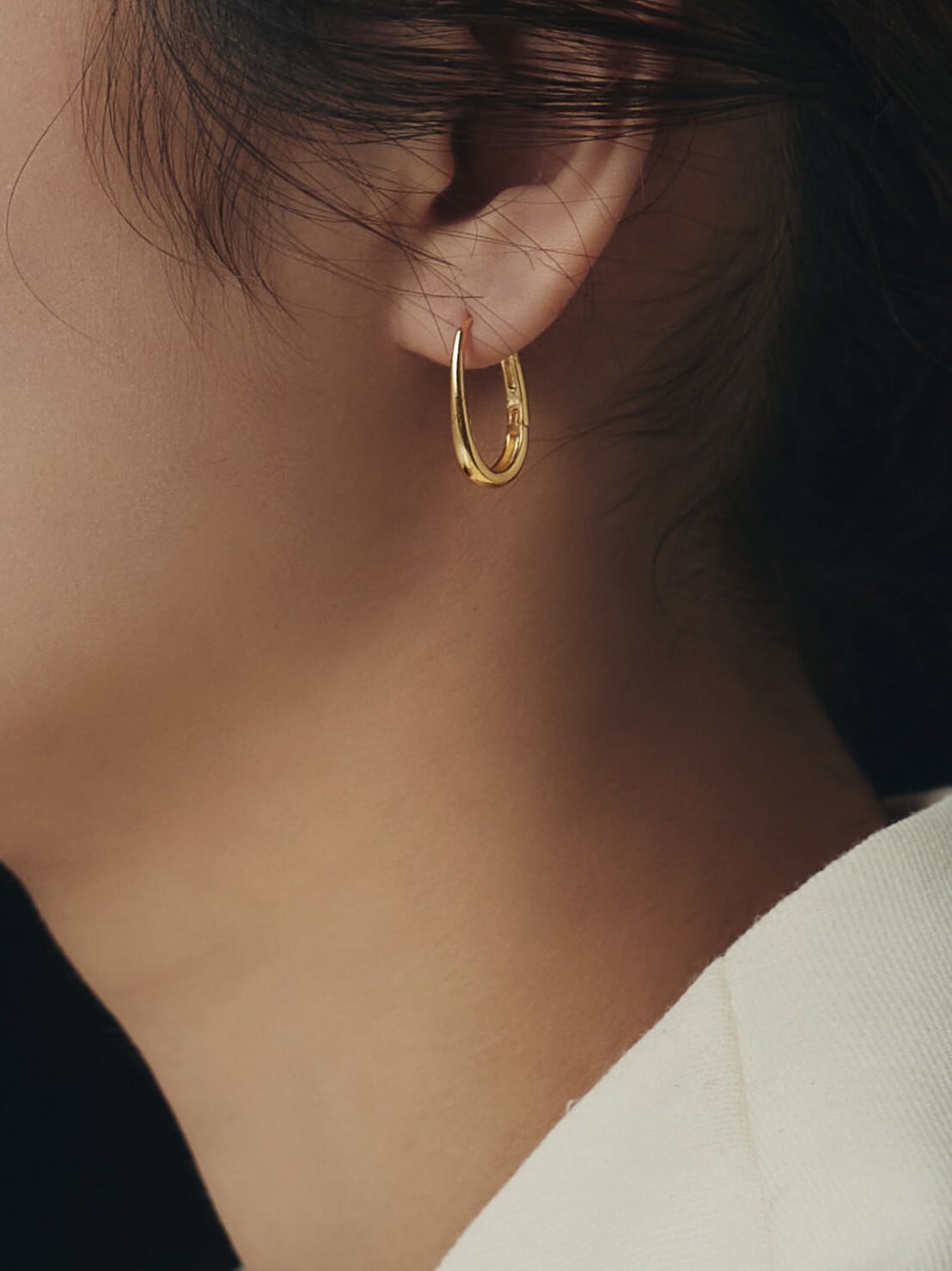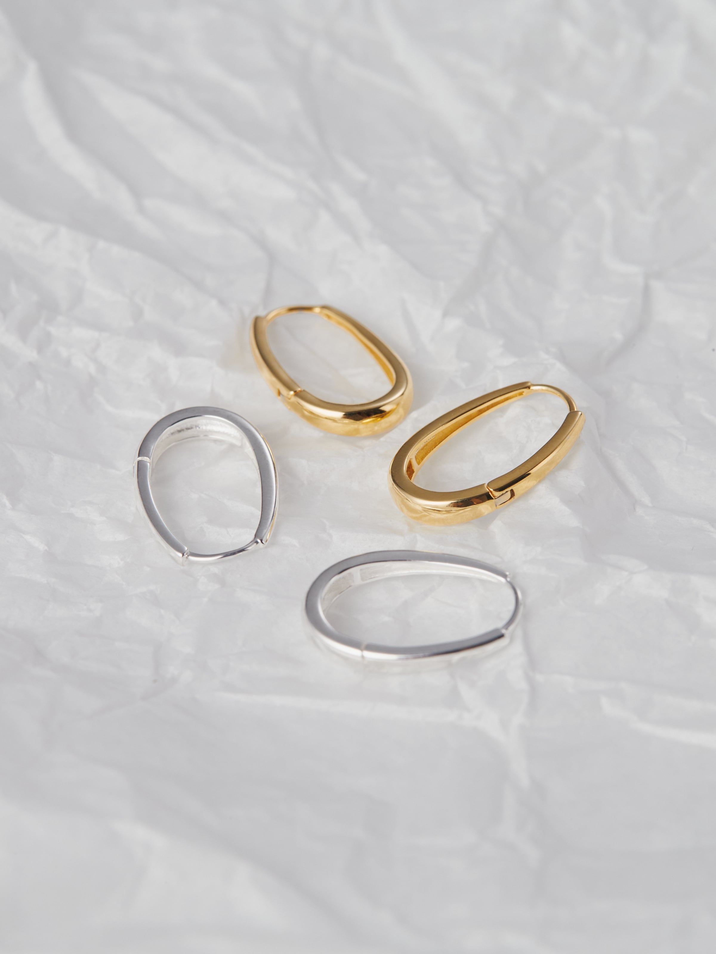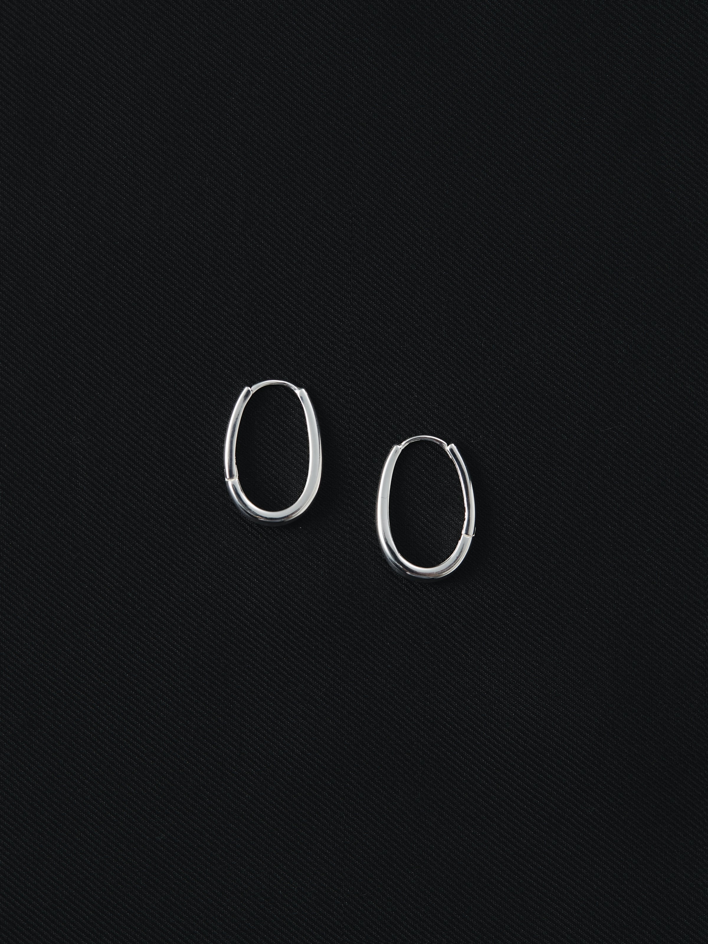 程よいボリューム感とシャープなシルエットとのバランスが魅力のオーバルフープピアス。
