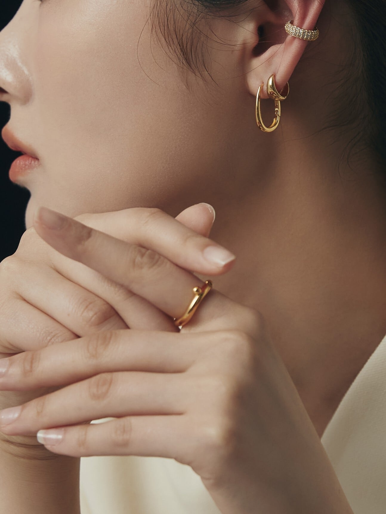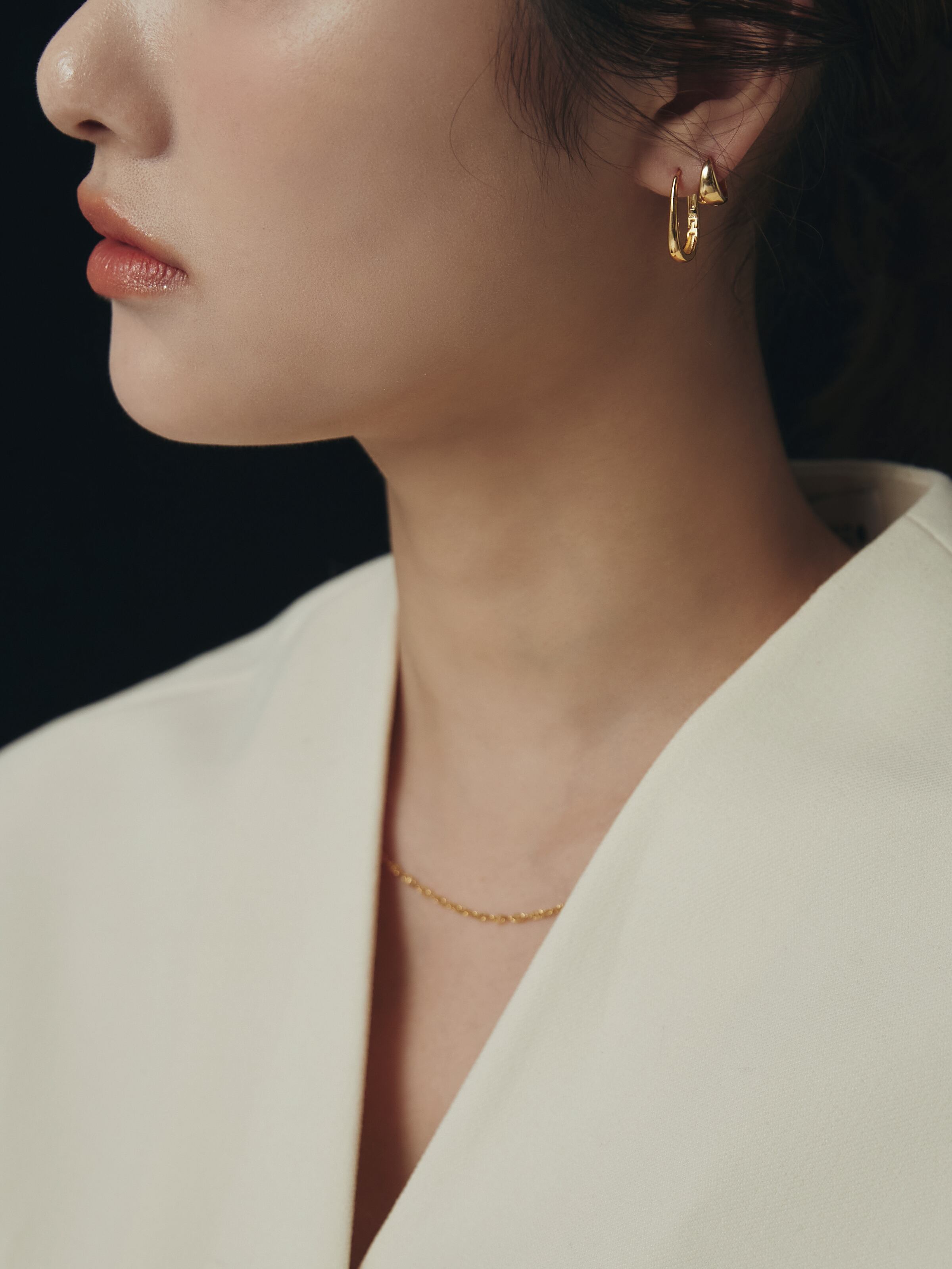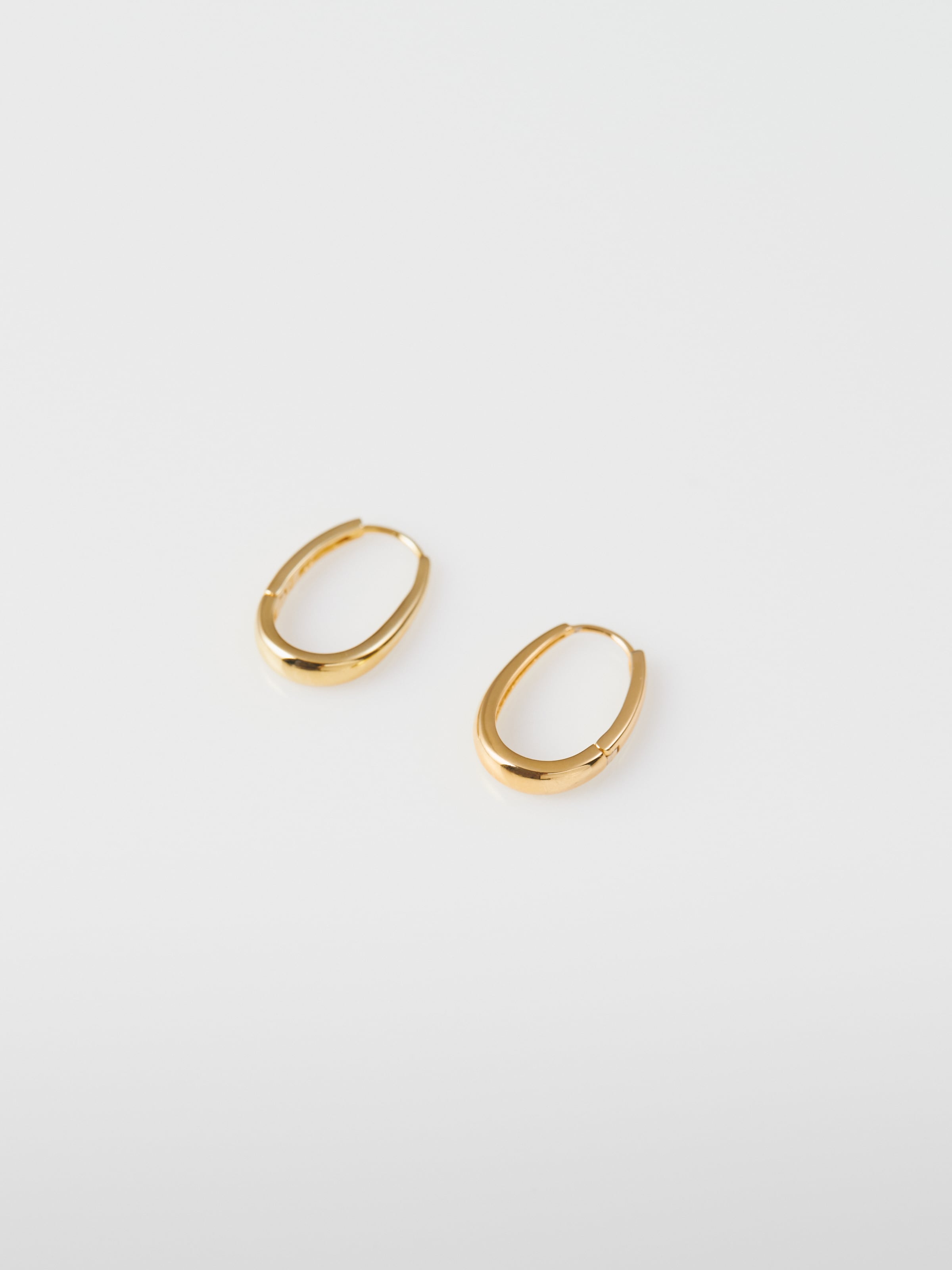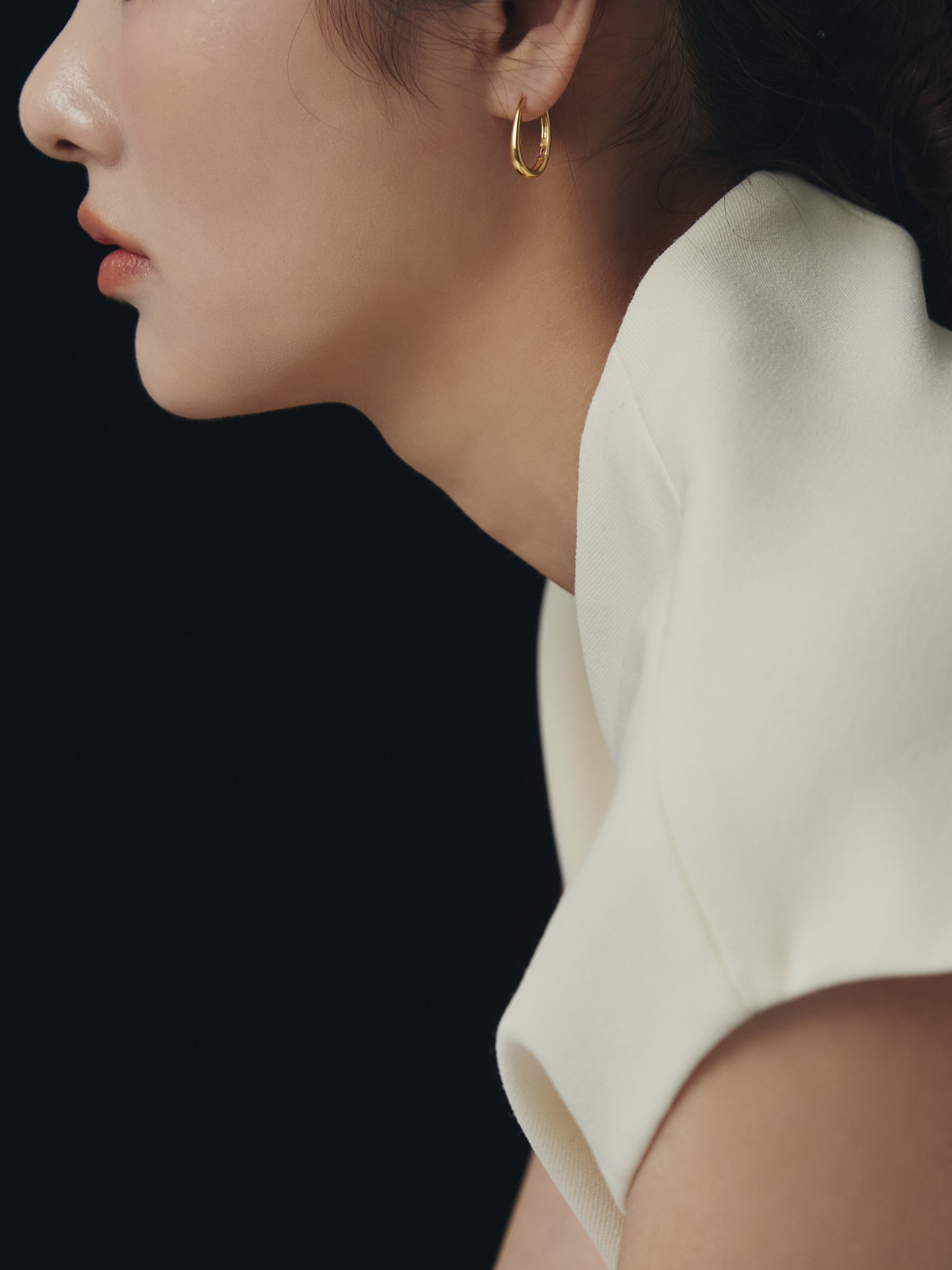 程よいボリューム感とシャープなシルエットとのバランスが魅力のオーバルフープピアス。