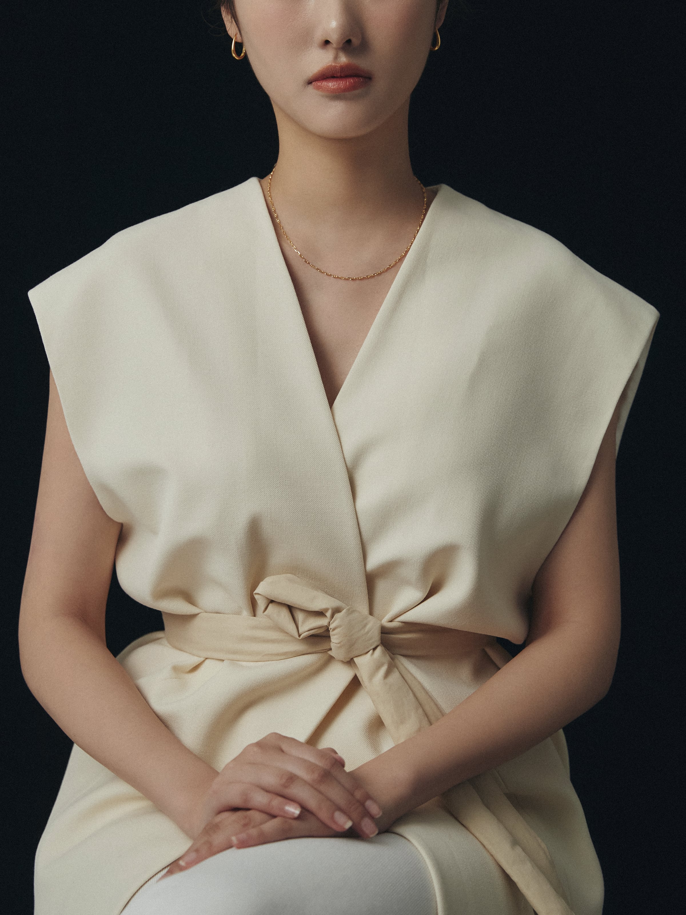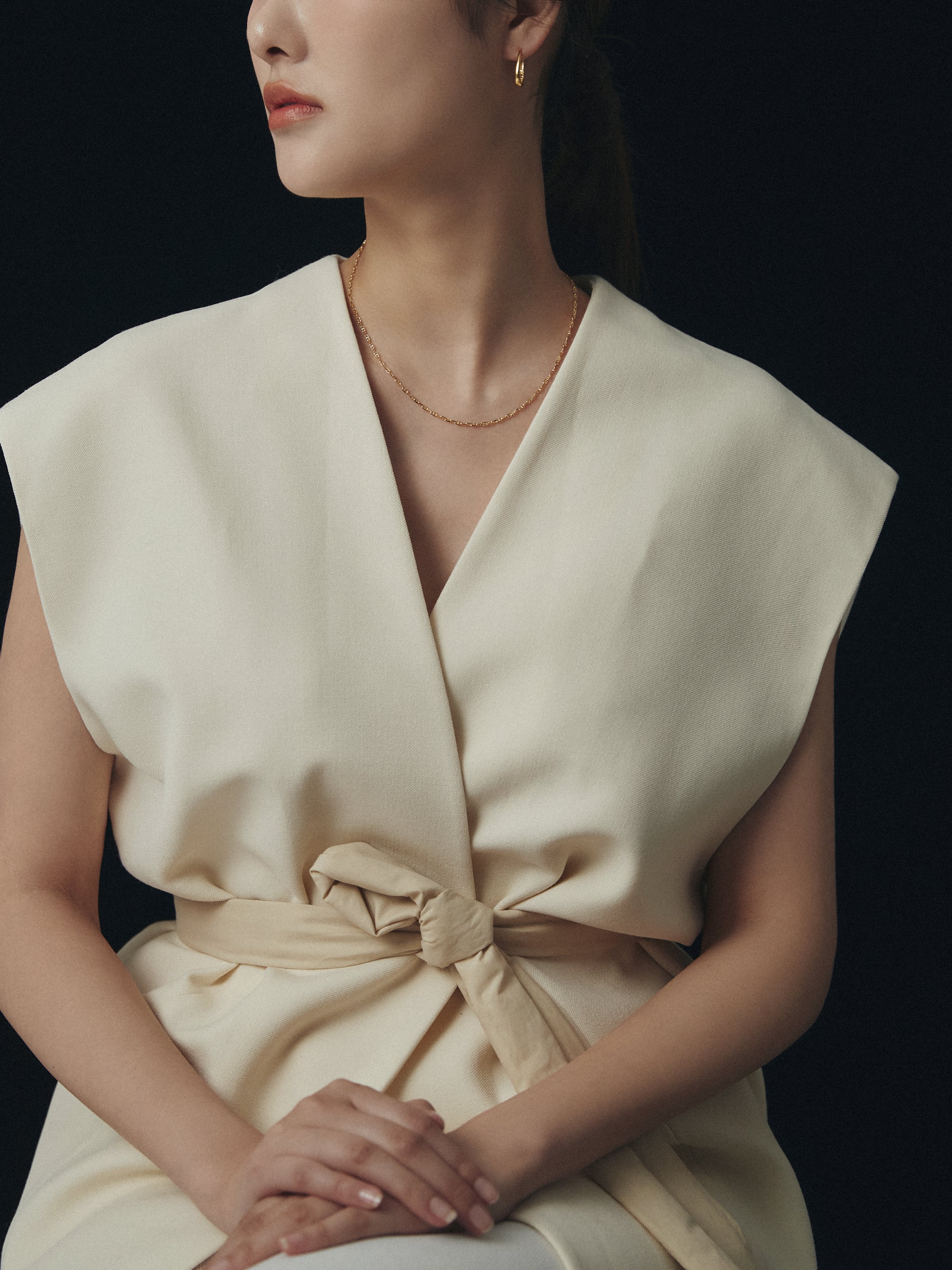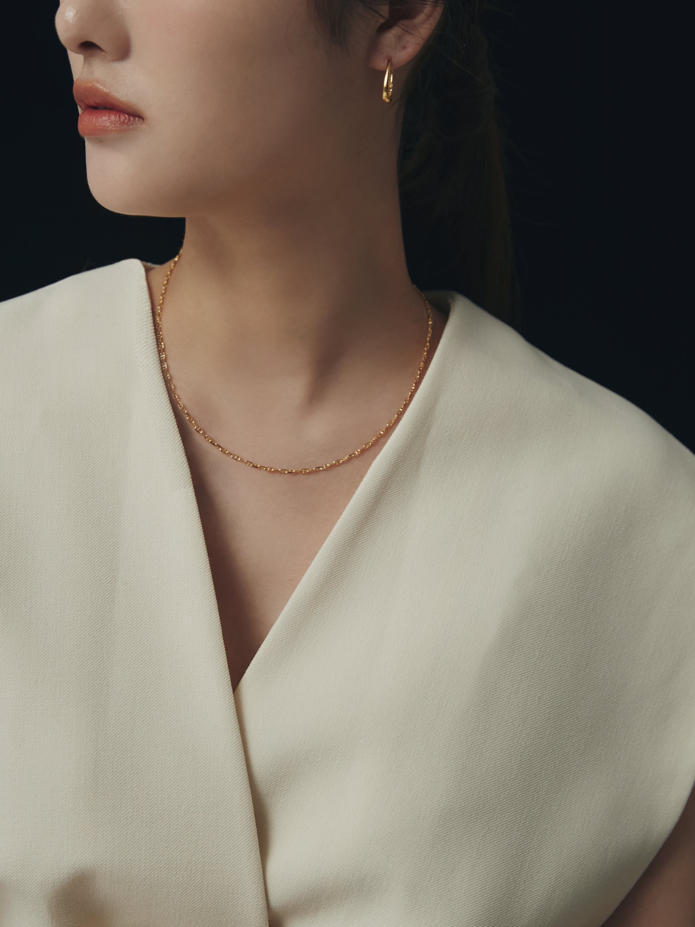控えめながらも立体感があり、首元に上品な輝きとリズムを加えます。