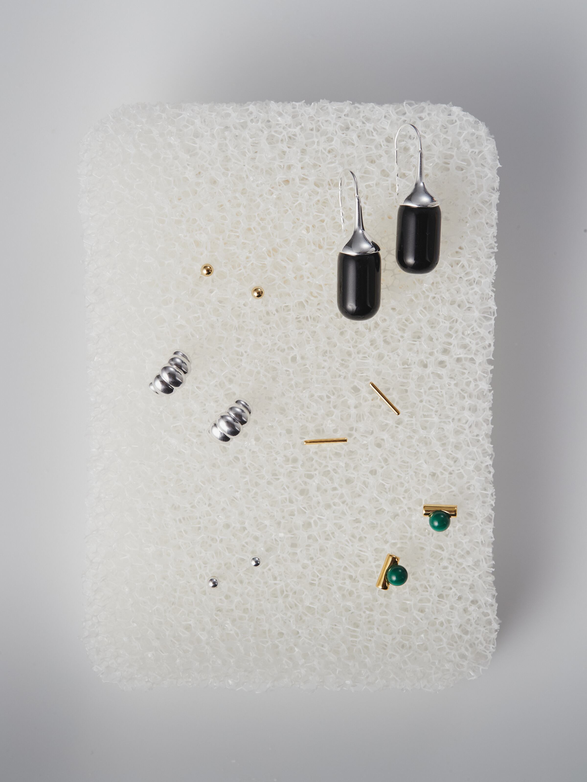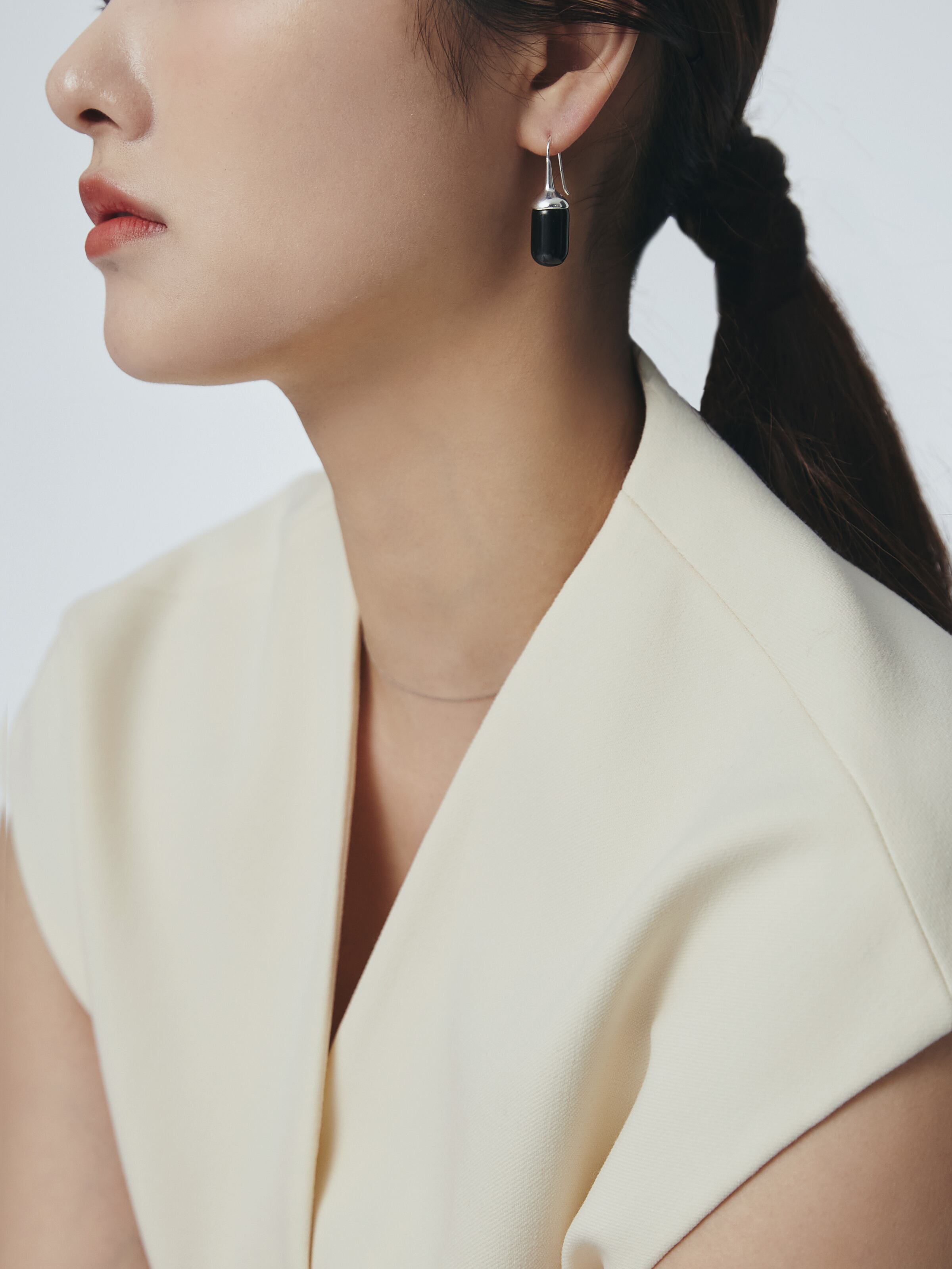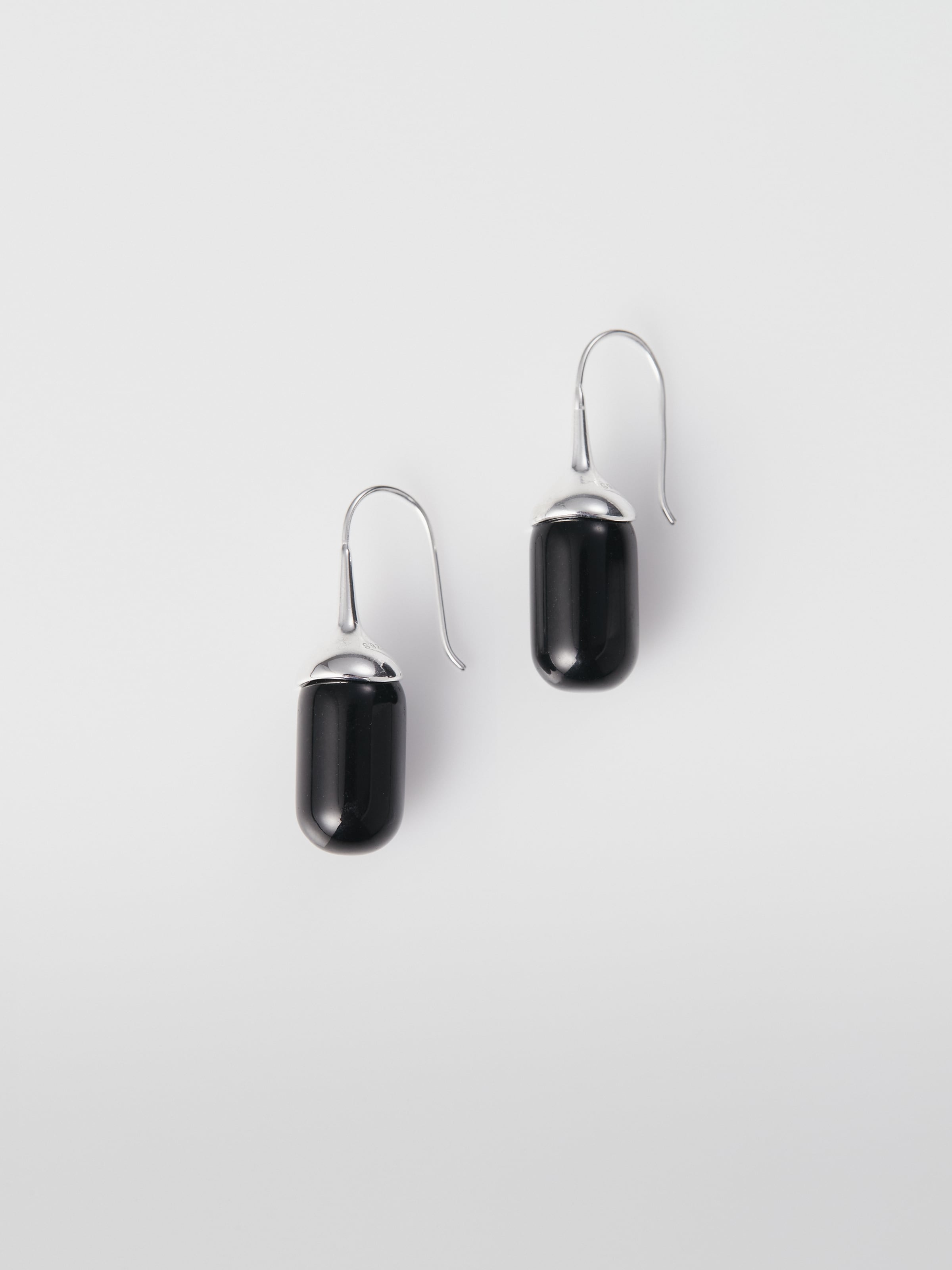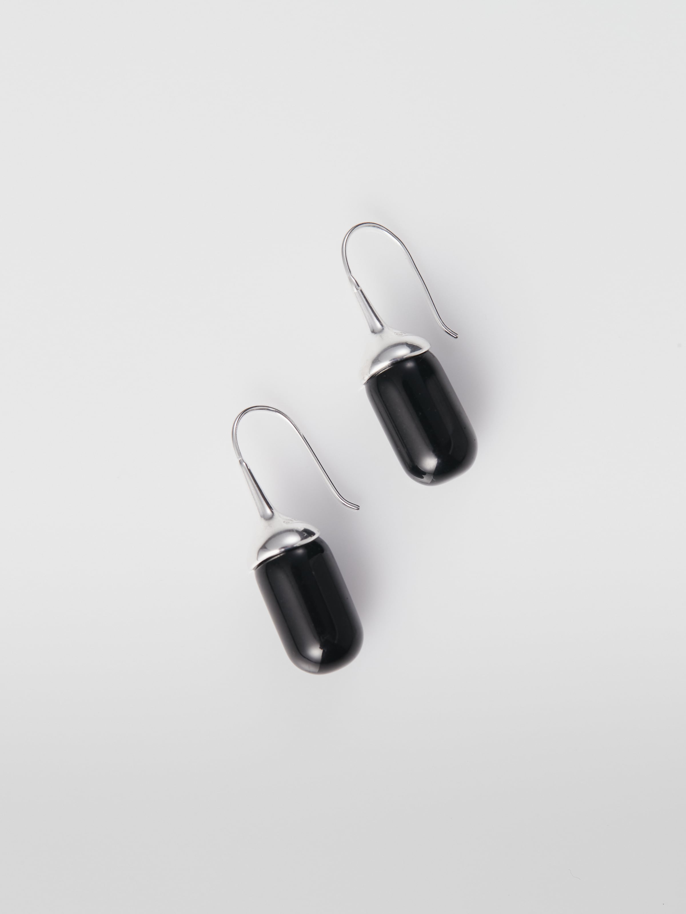 艶やかなブラックオニキスのドロップモチーフが印象的なフックピアス。
