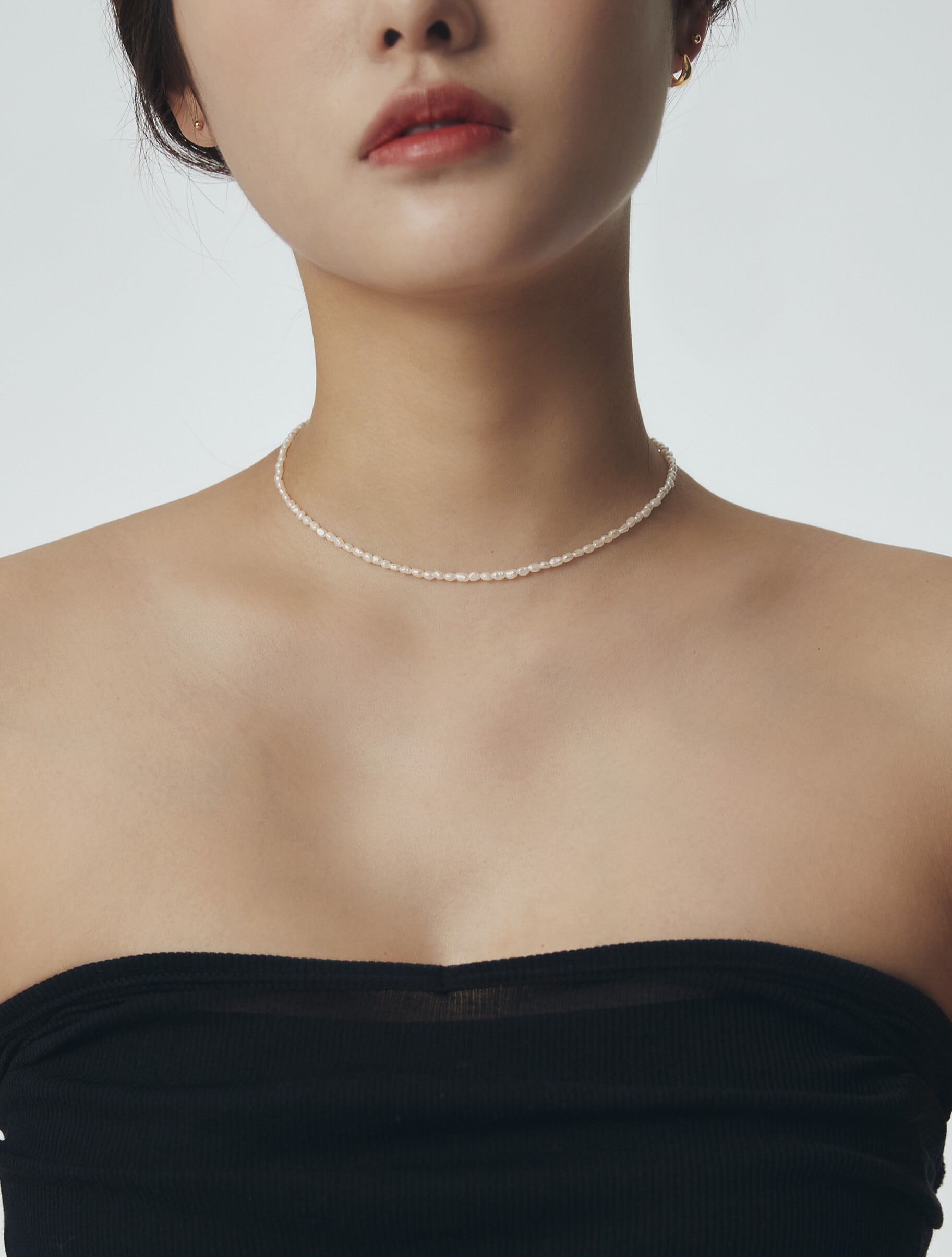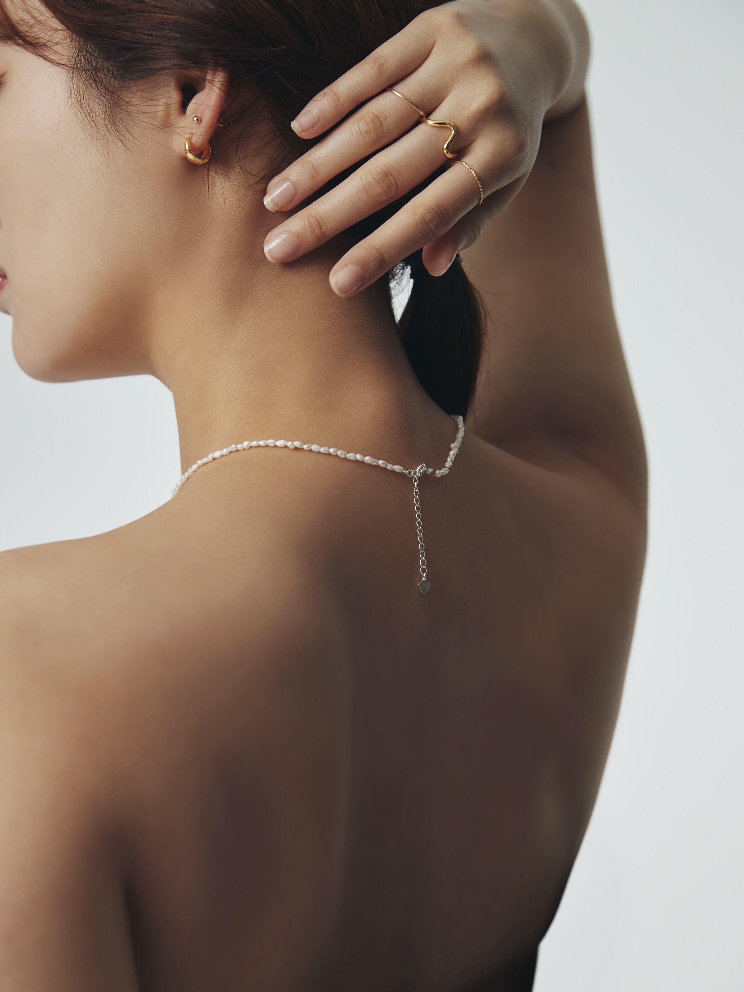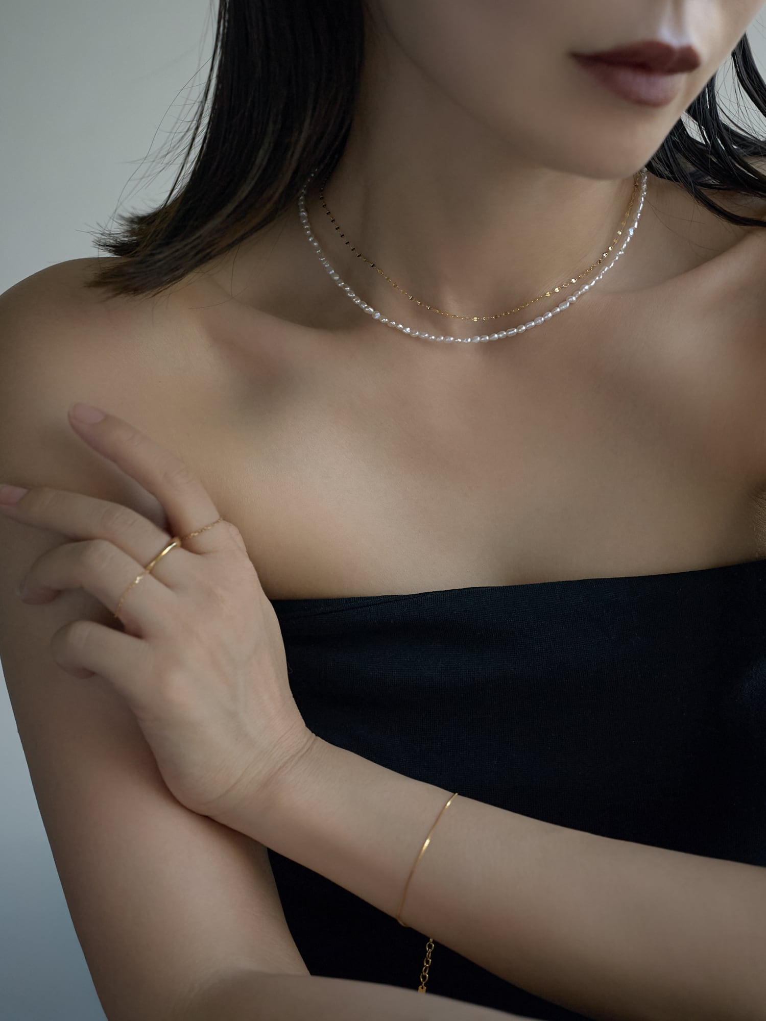華奢ながらも首元に清楚な存在感を添え、カジュアルにもフォーマルにも自然に溶け込みます。