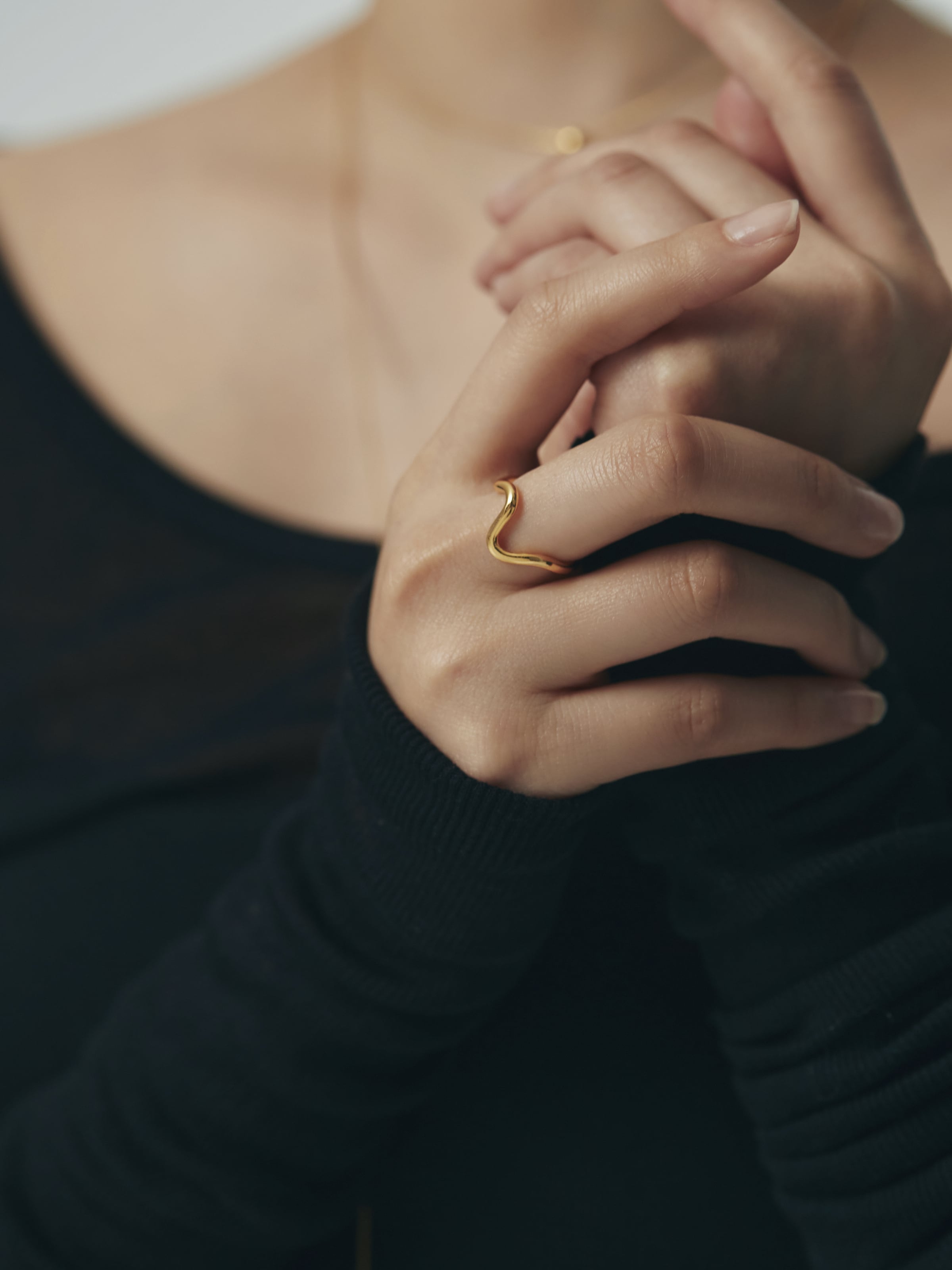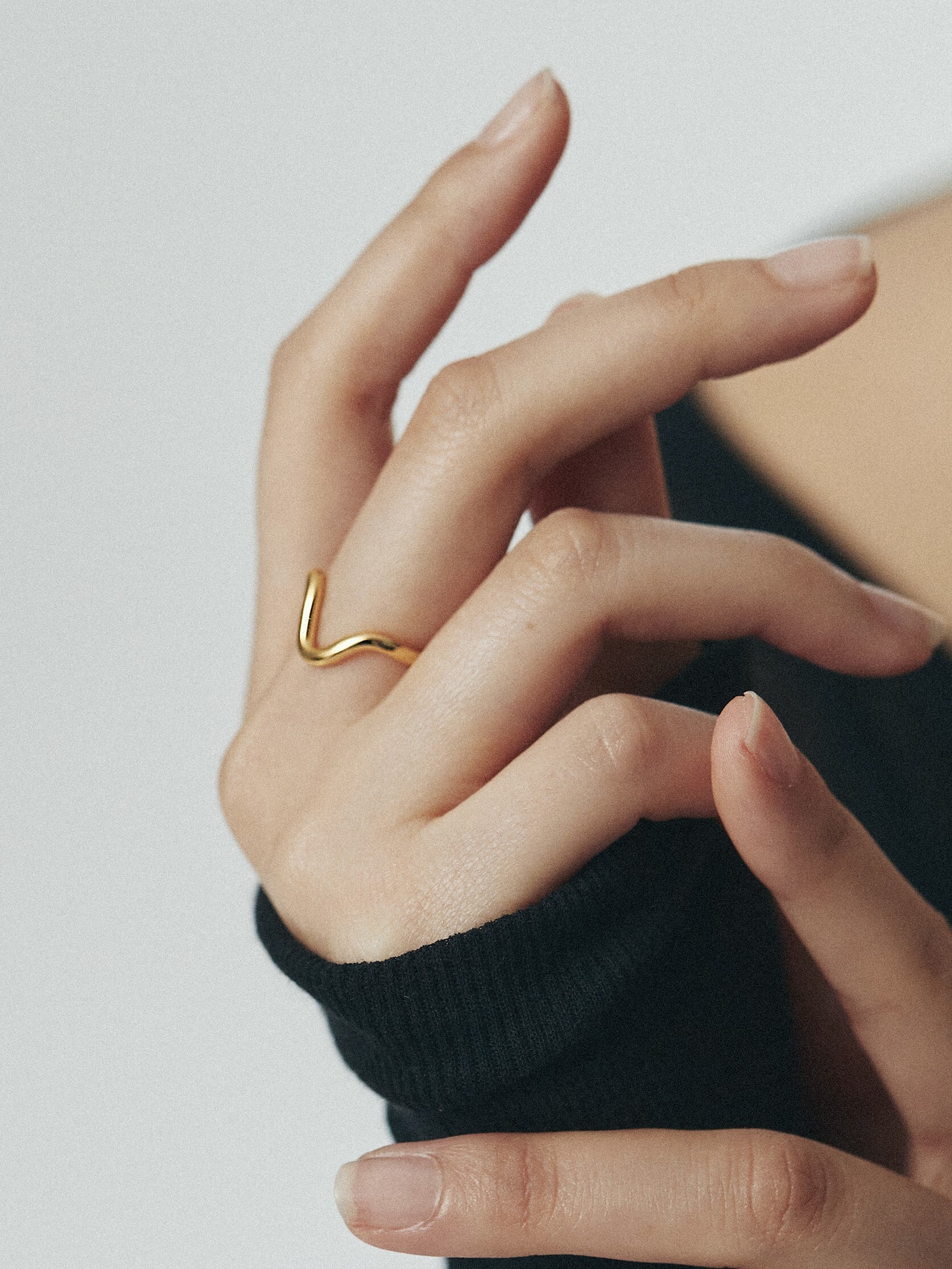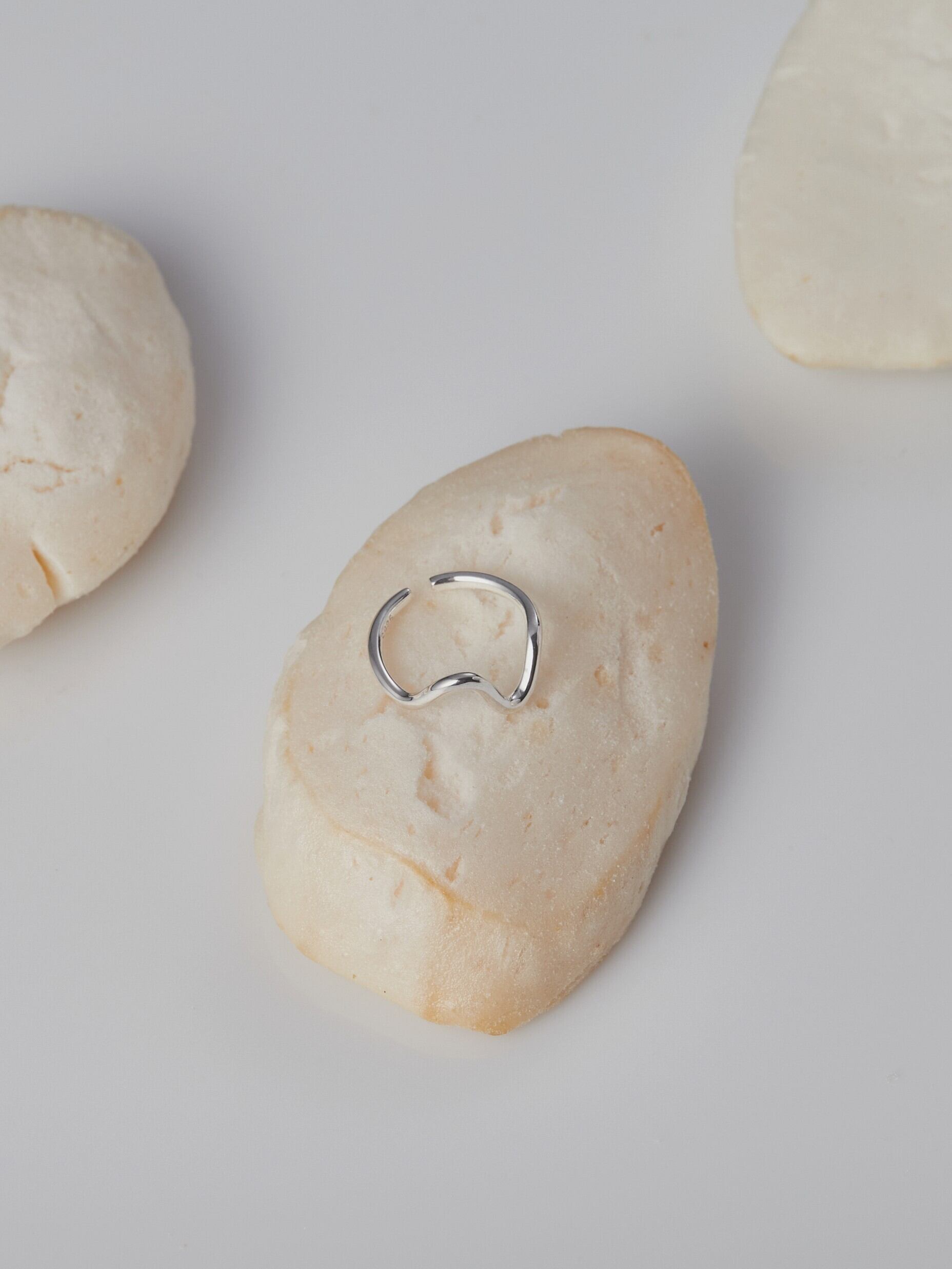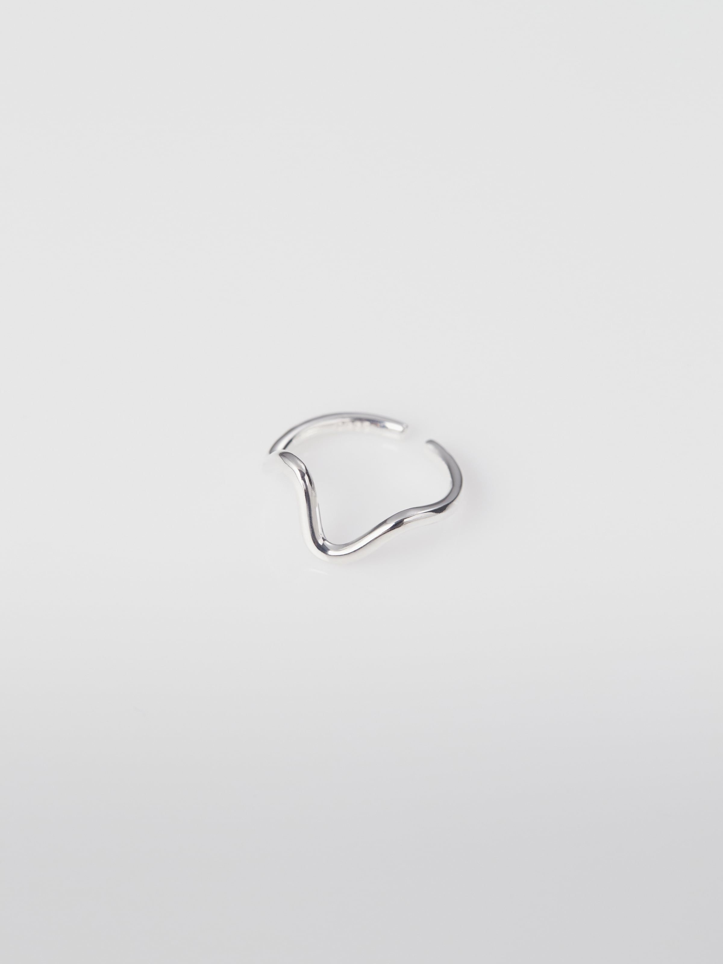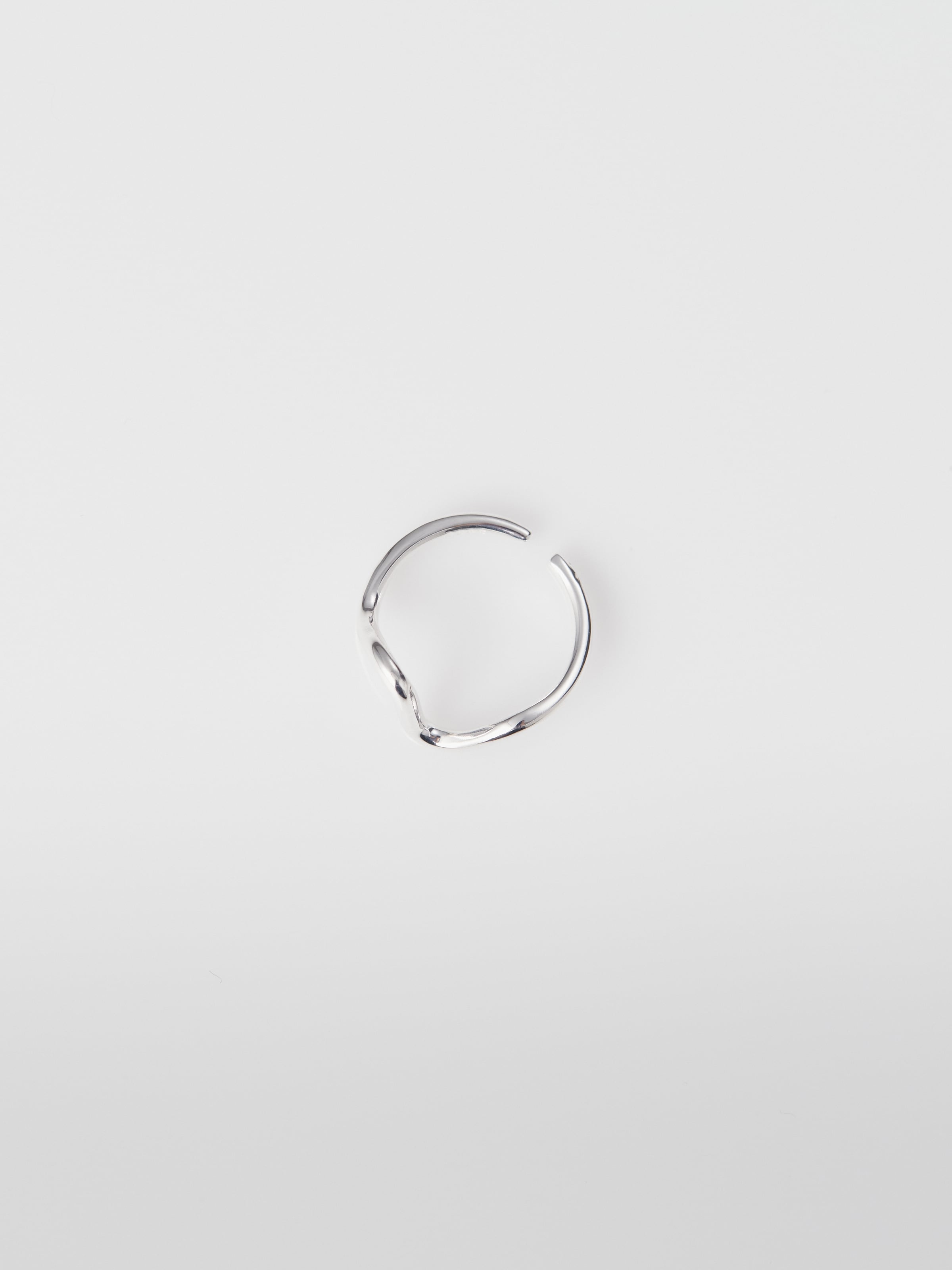有機的なカーブが指先にやわらかな動きを添える、ミニマルなデザインのオープンリング。