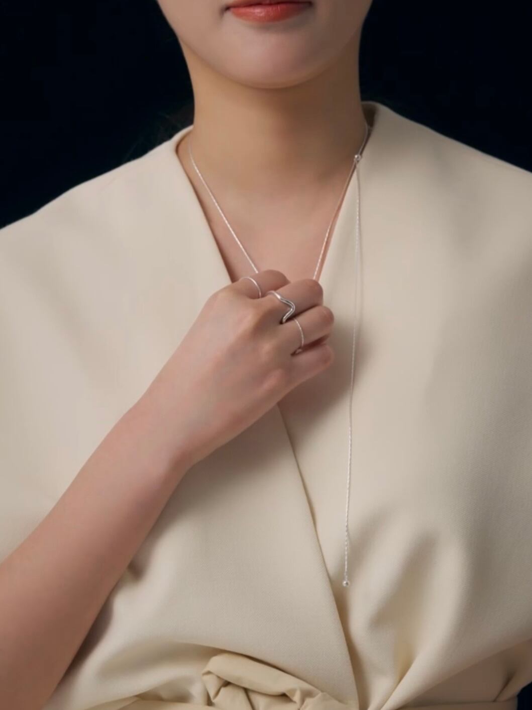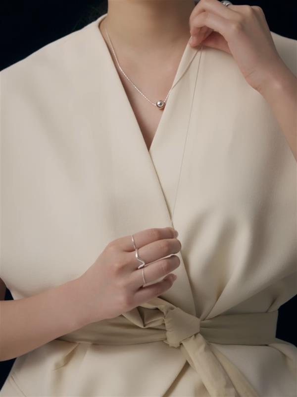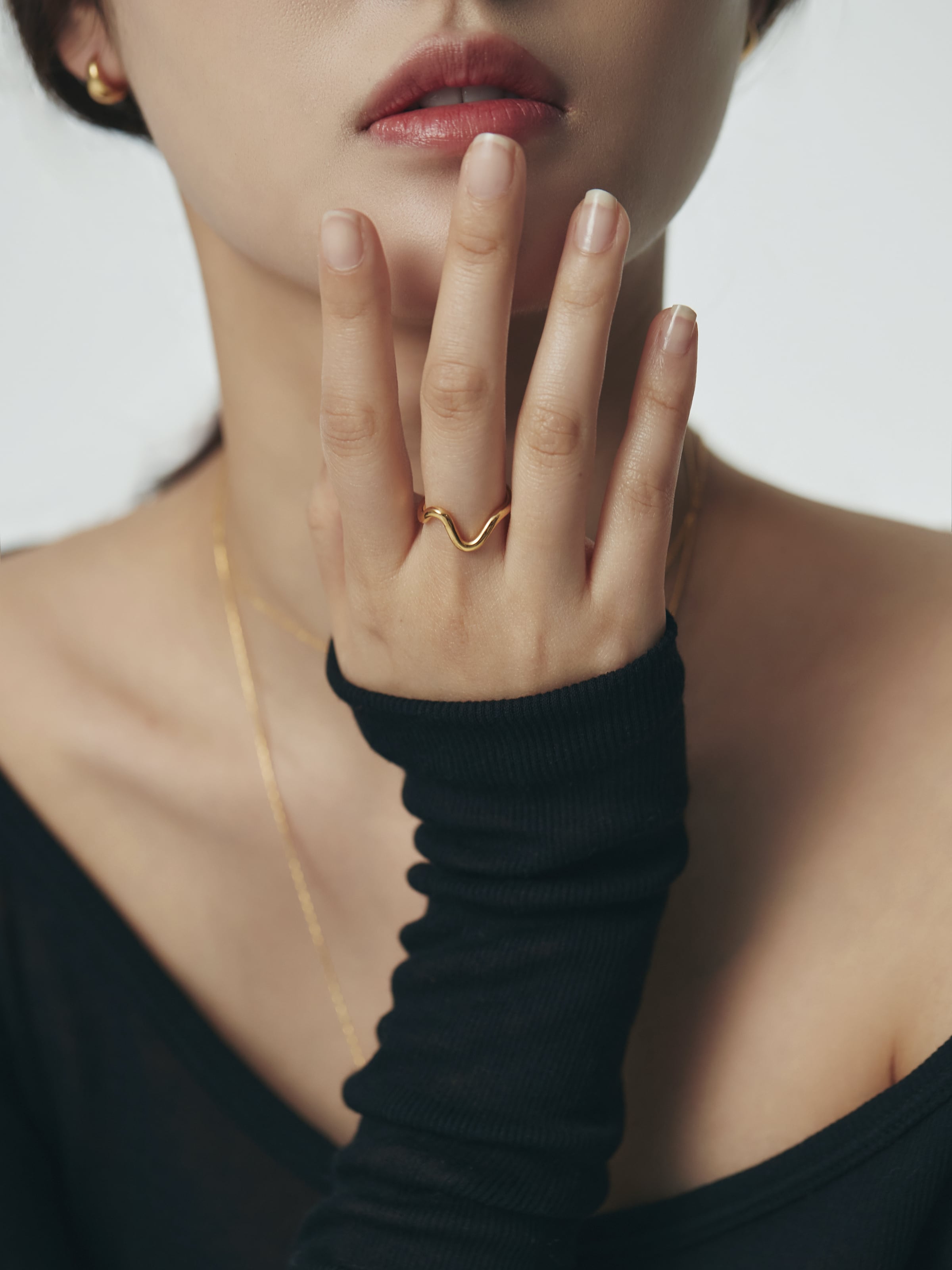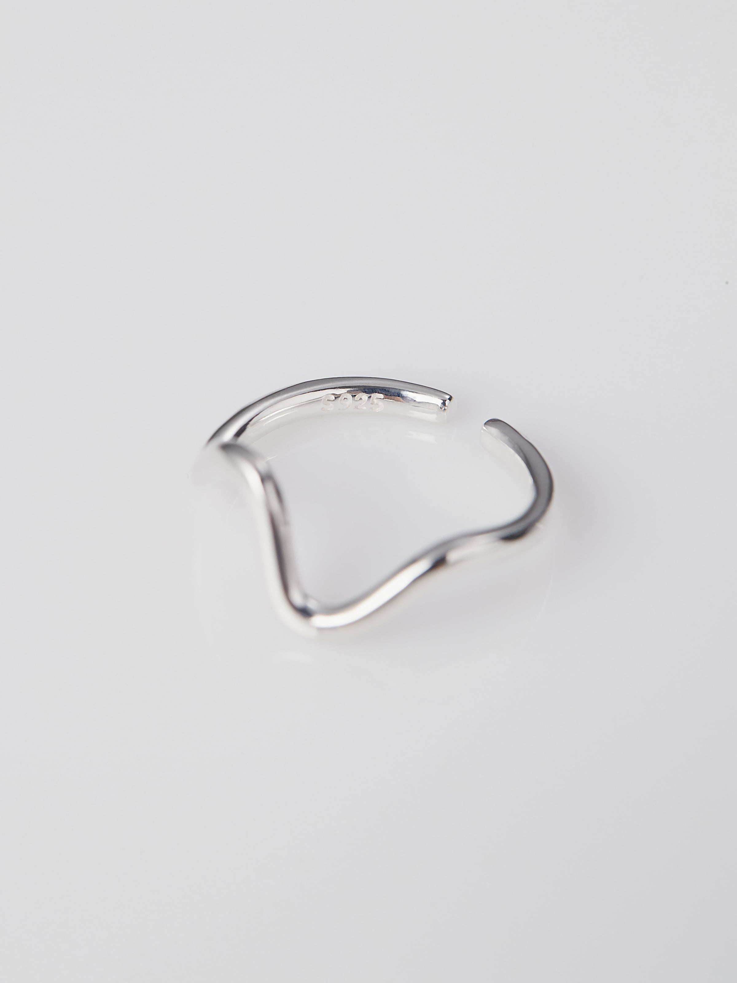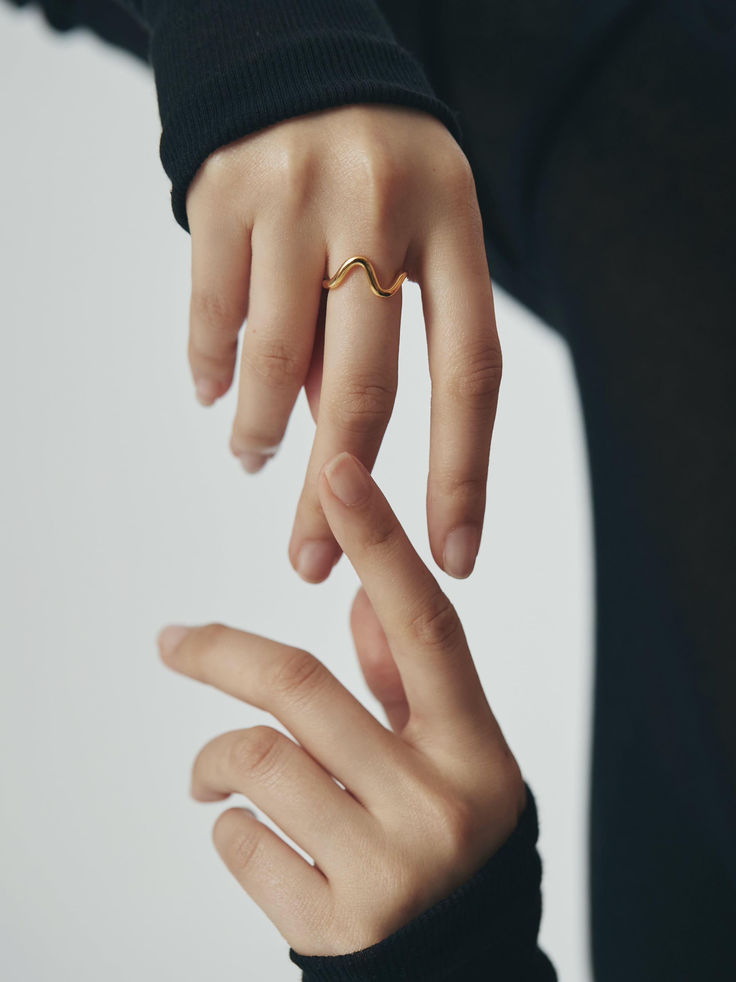 有機的なカーブが指先にやわらかな動きを添える、ミニマルなデザインのオープンリング。