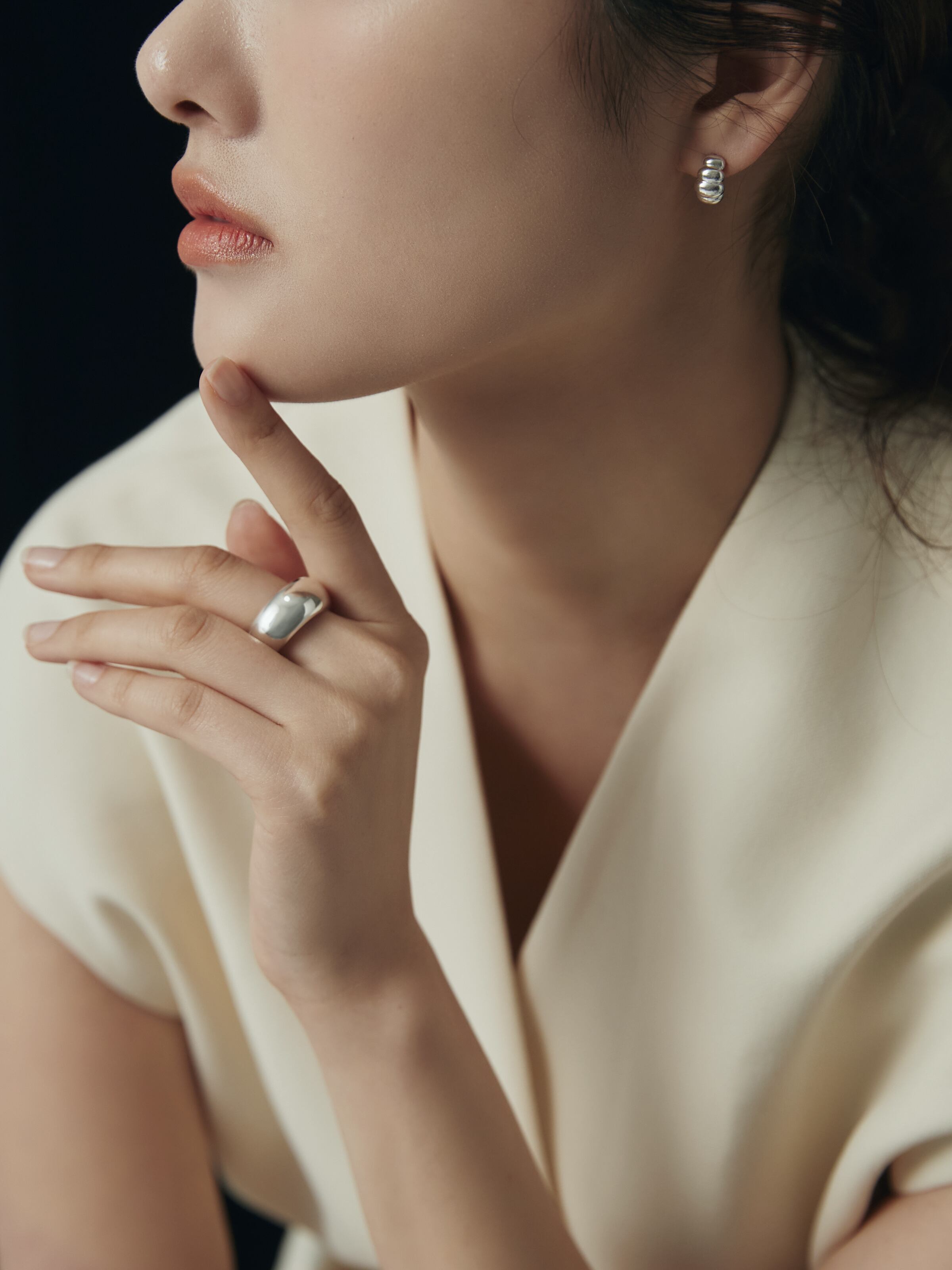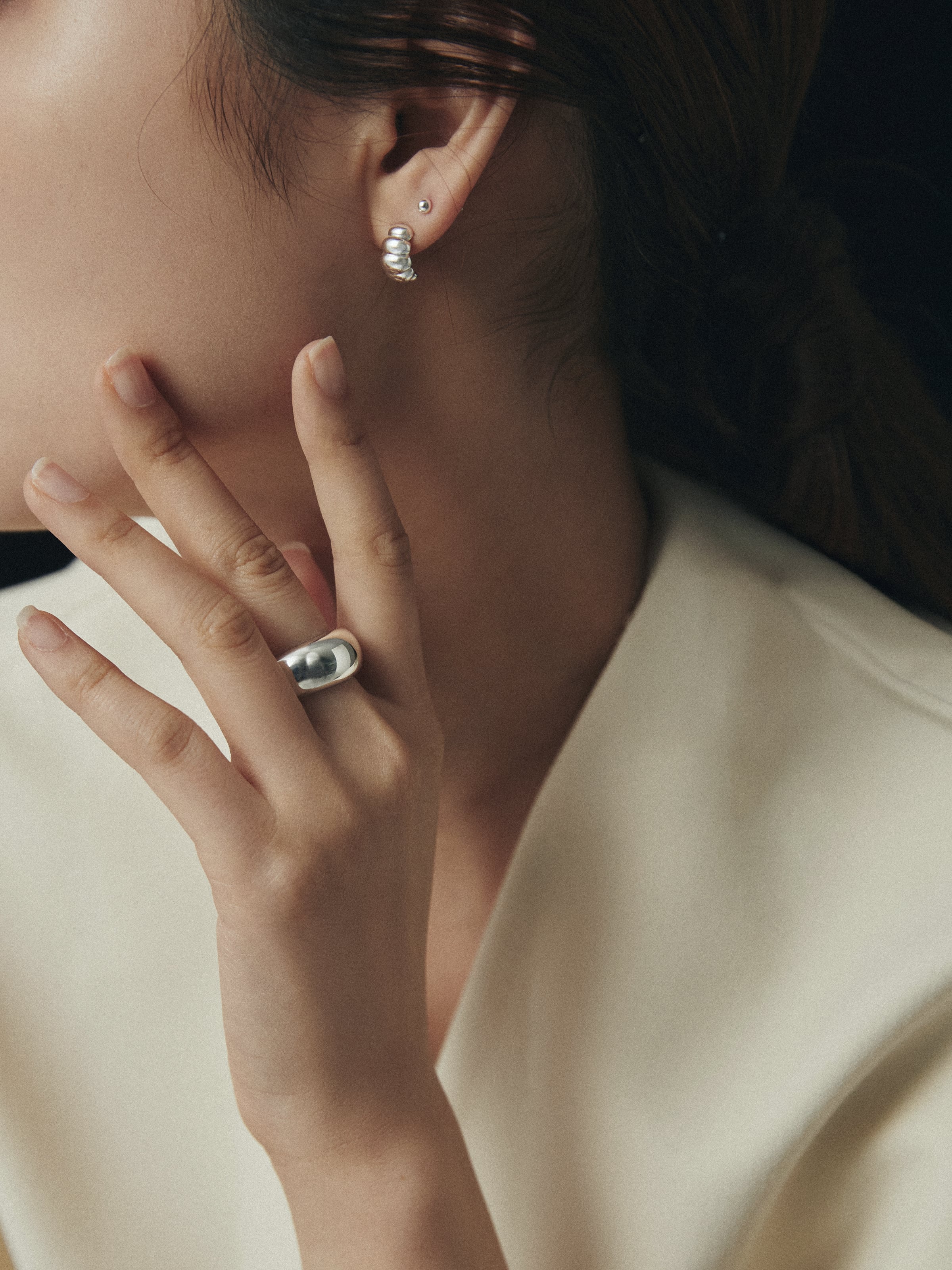 ぷっくりと厚みのあるフォルムが目を引く、チャンキーなドーナツリング。