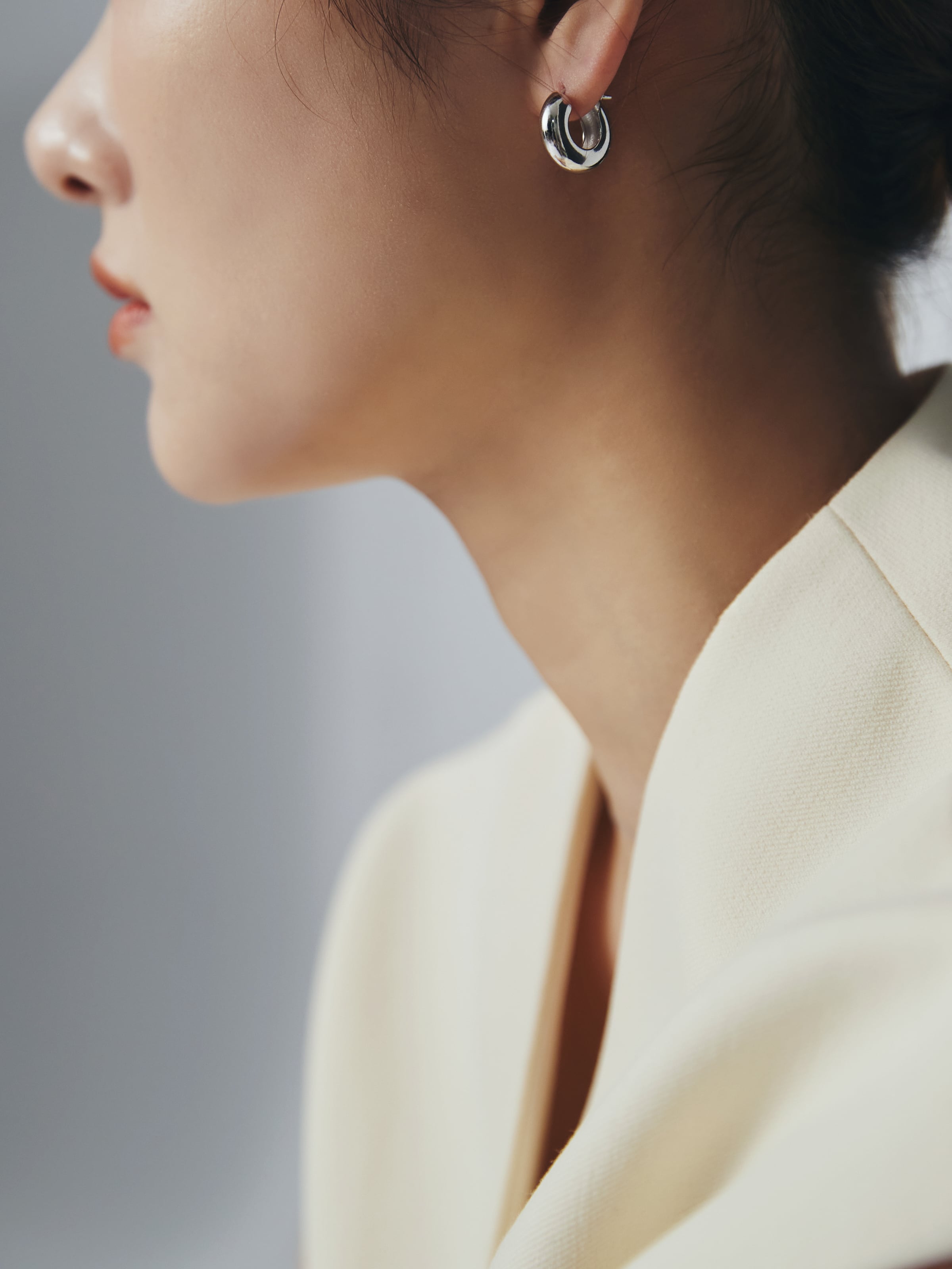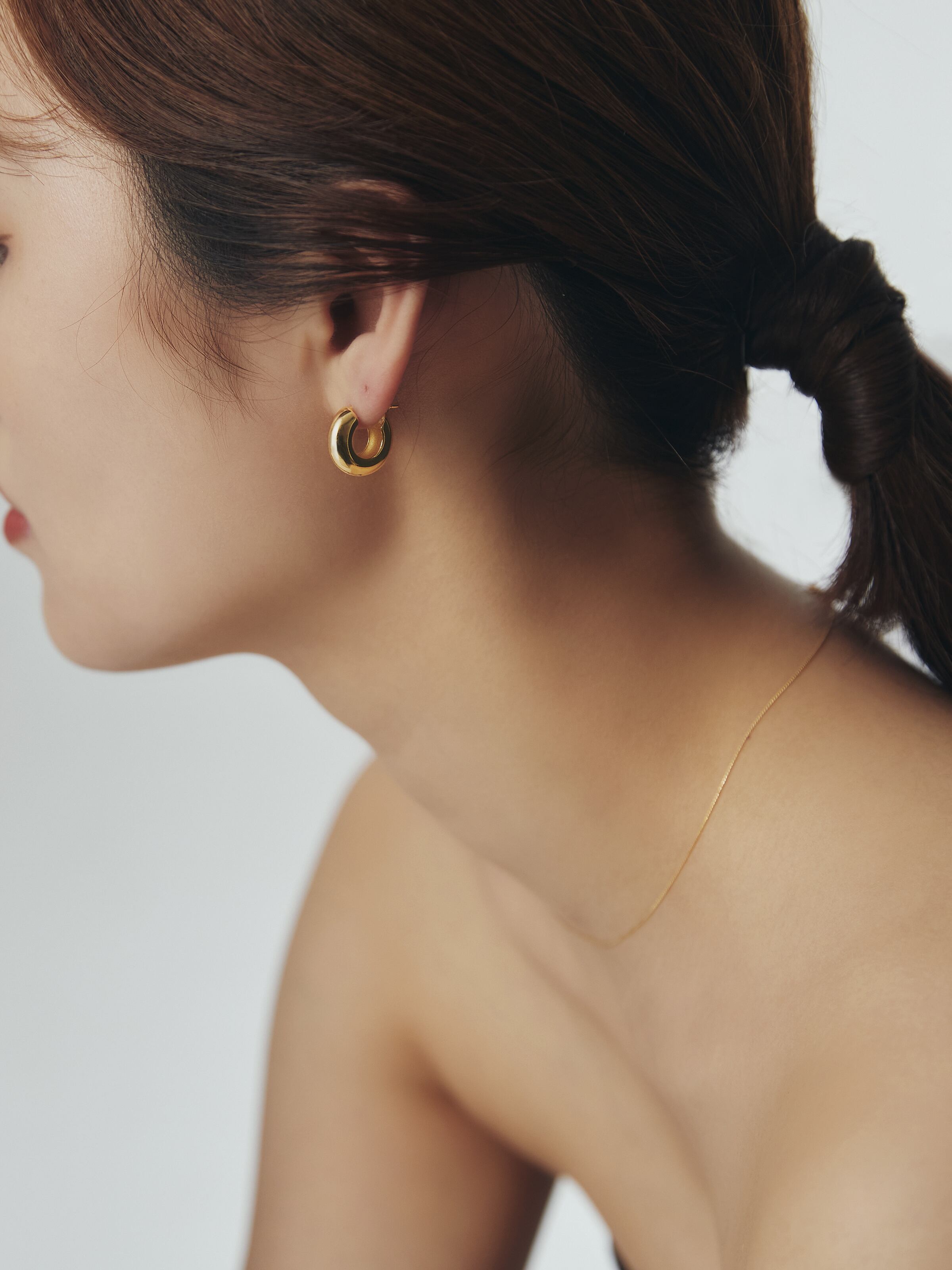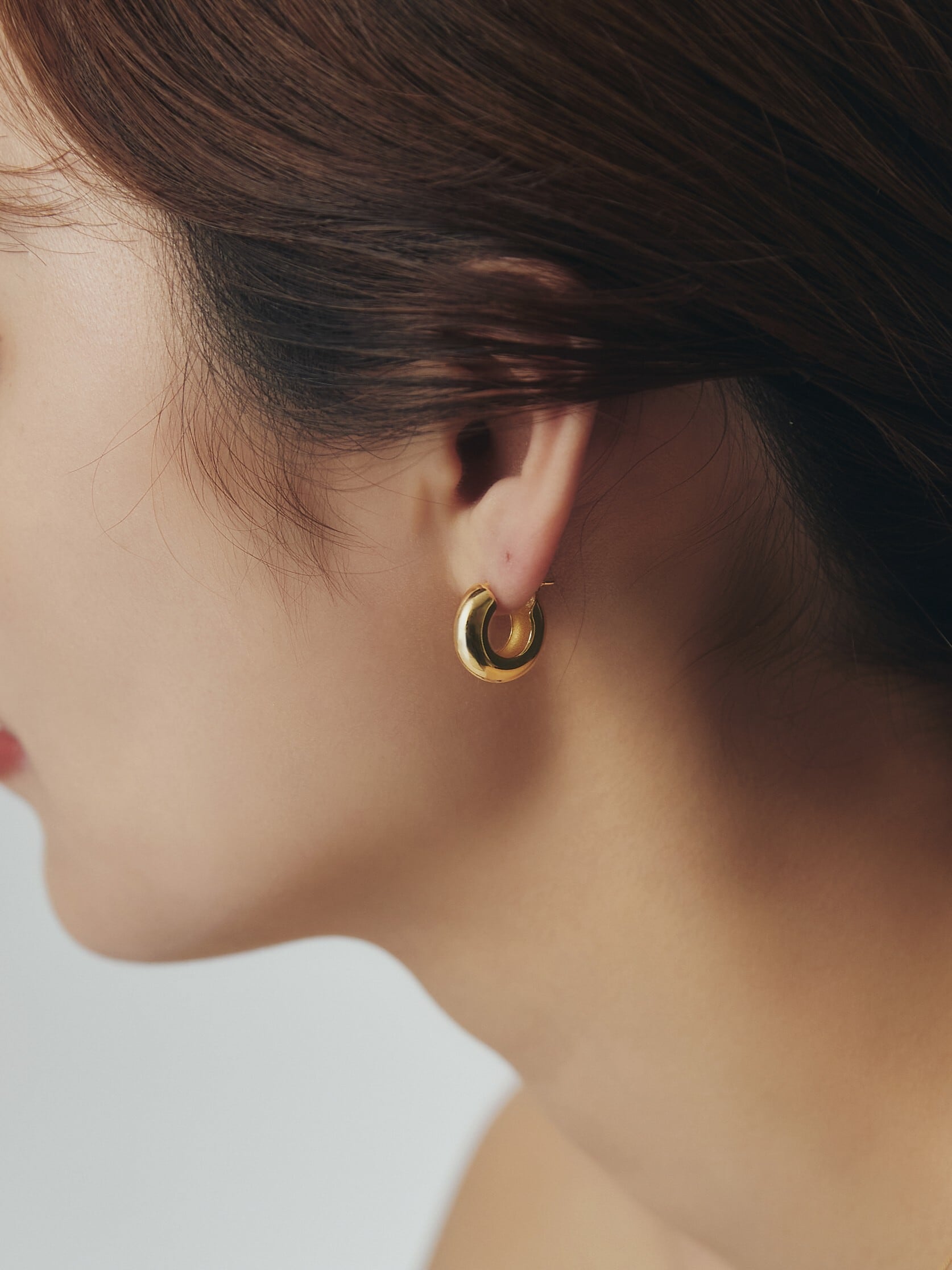 ぷっくりとしたフォルムが目を引く、チャンキーフープピアス。