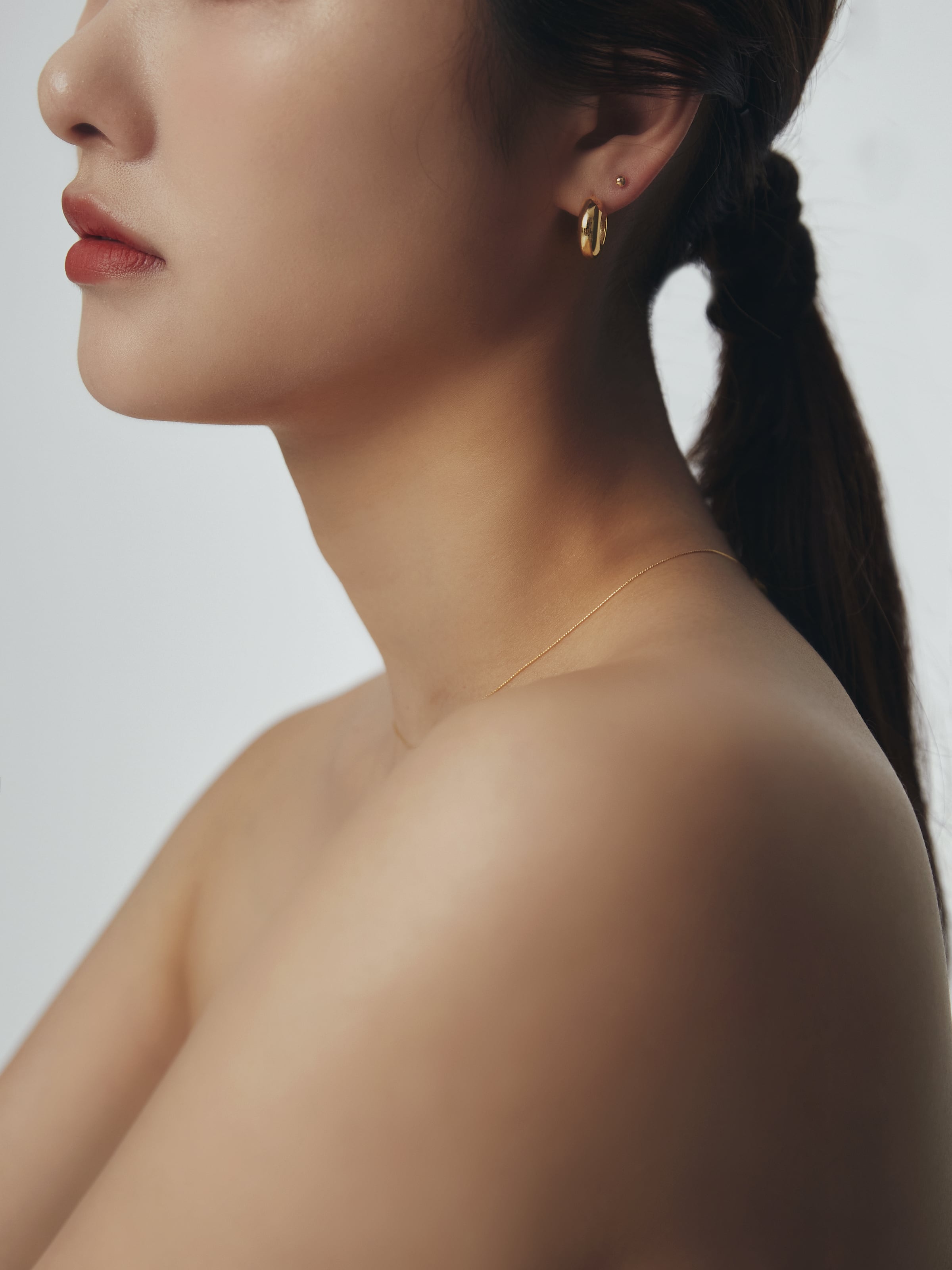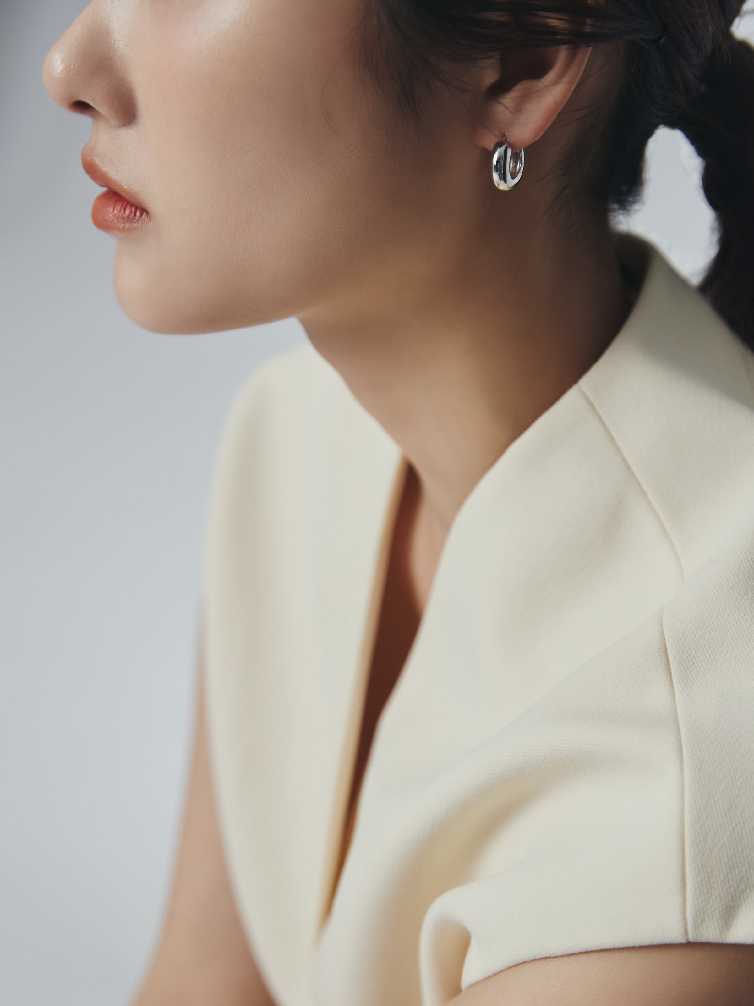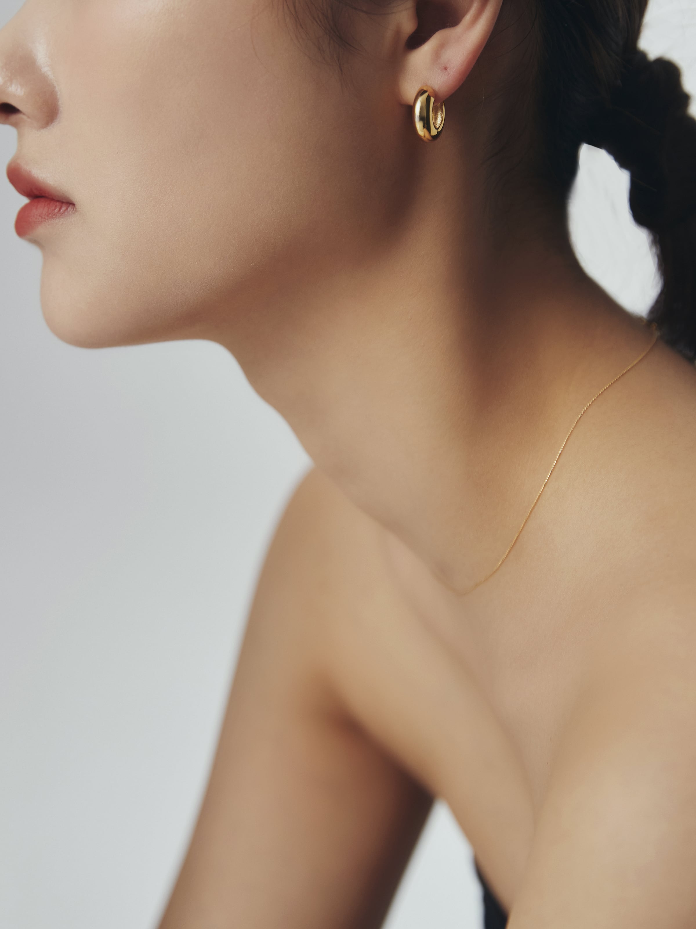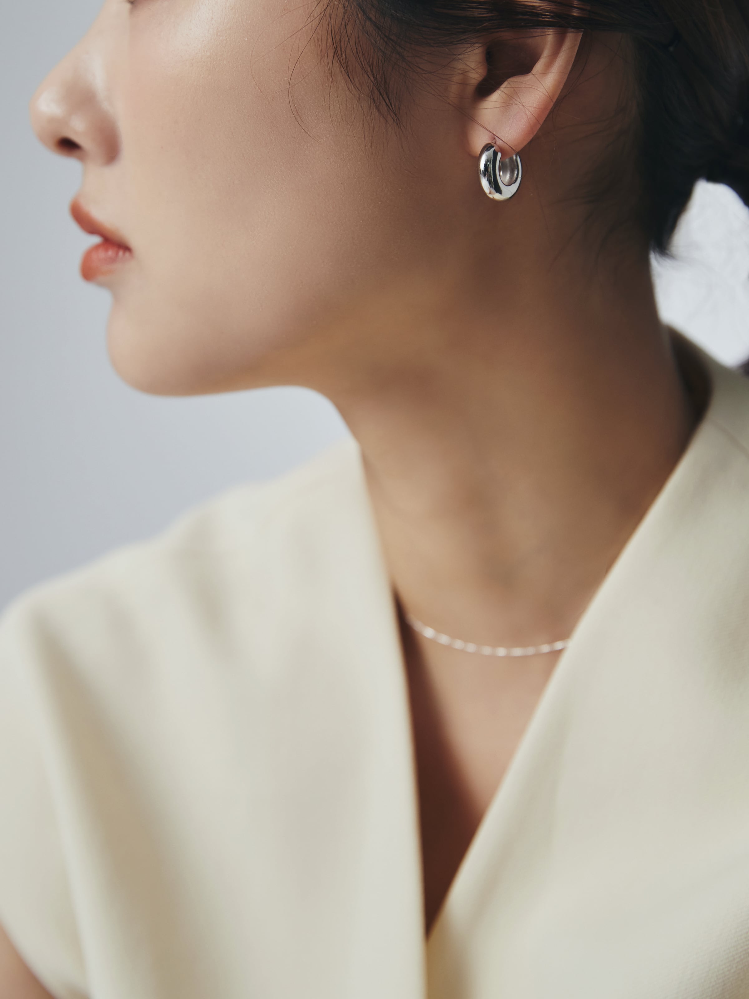 ぷっくりとしたフォルムが目を引く、チャンキーフープピアス。