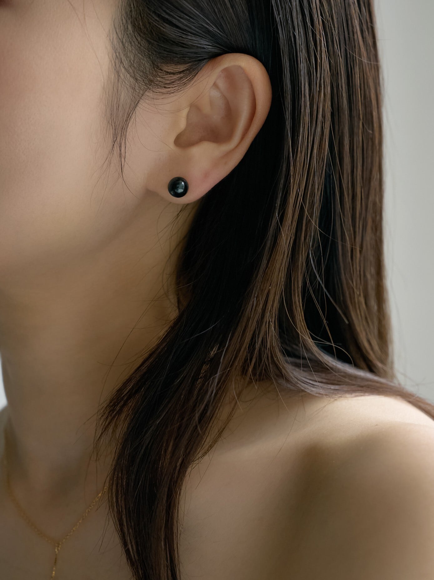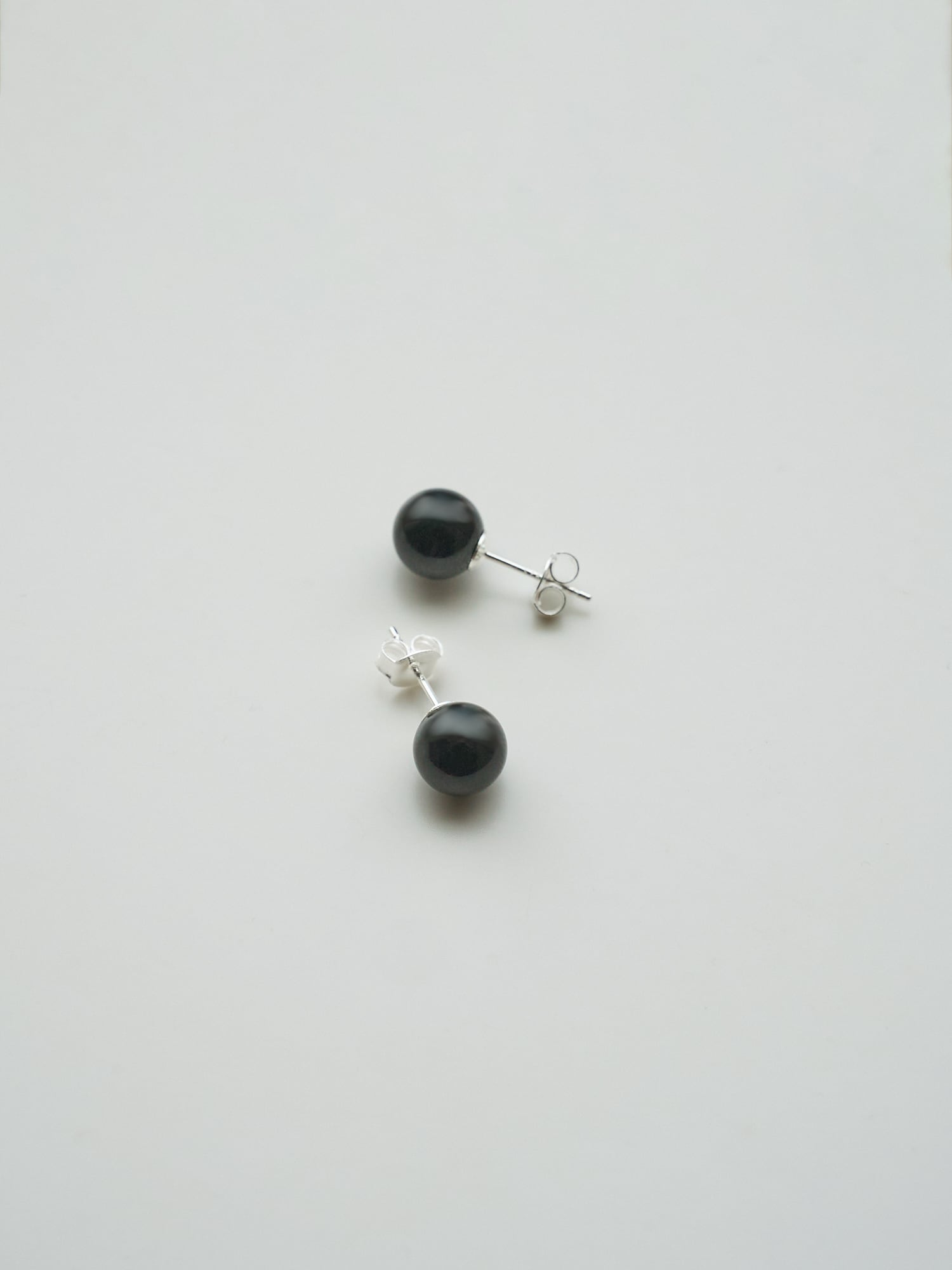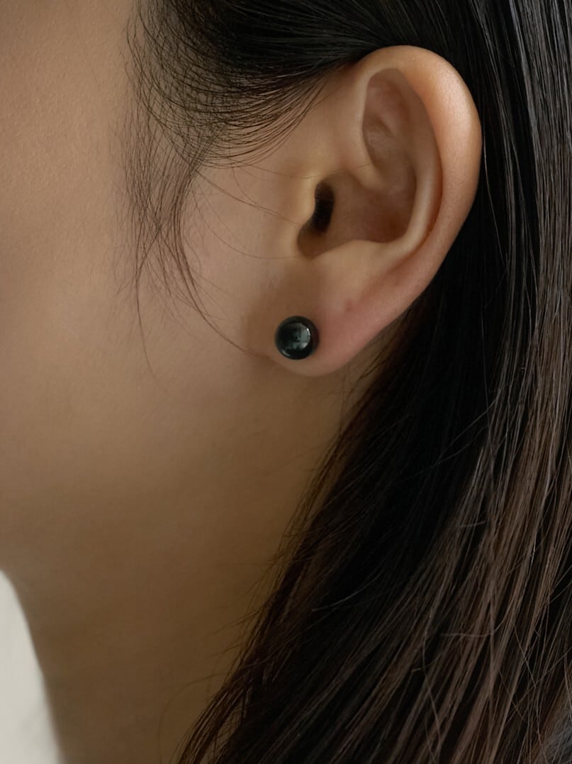 艶やかなブラックオニキスをシンプルに一粒あしらったミニマルなピアス。