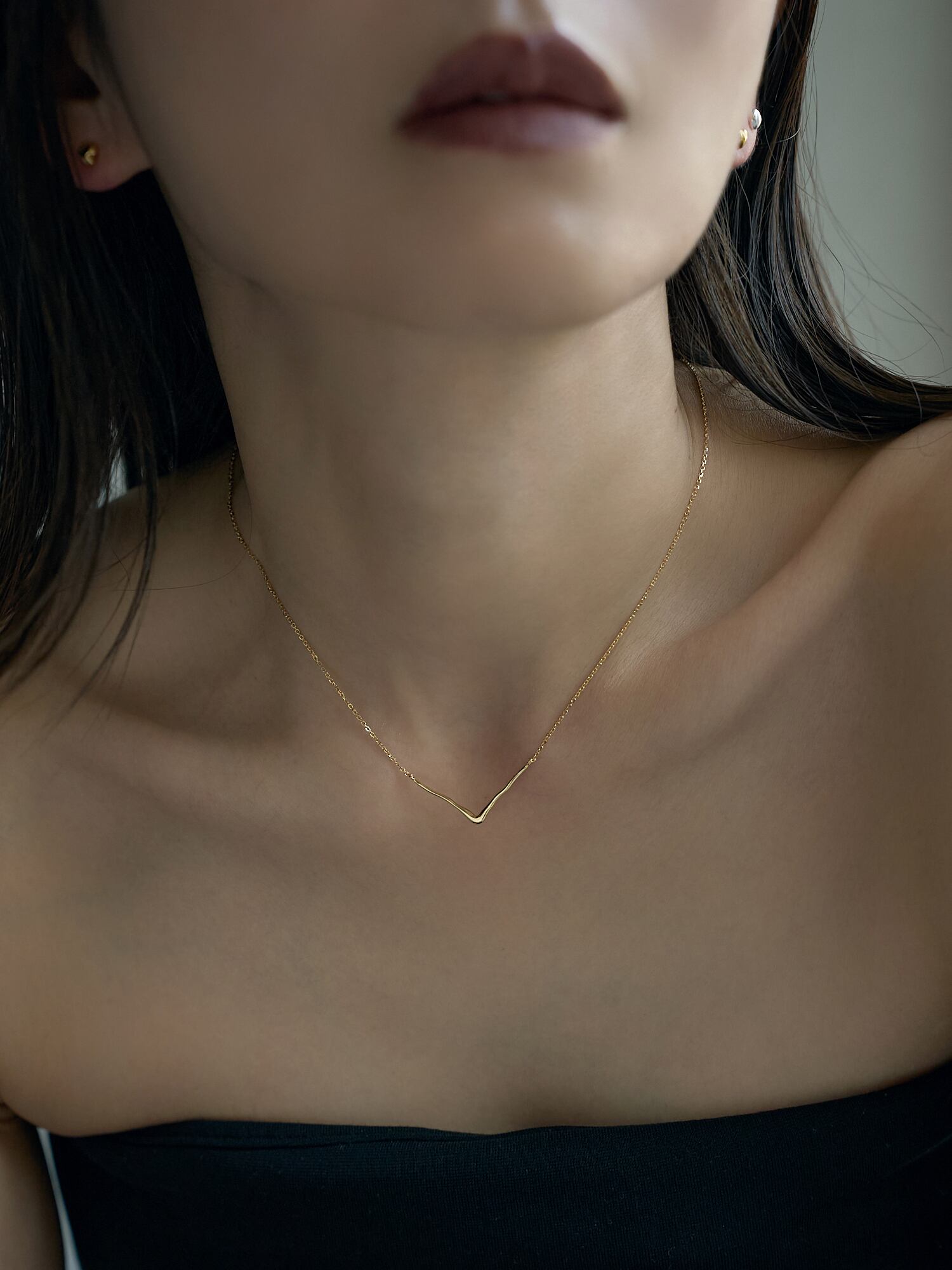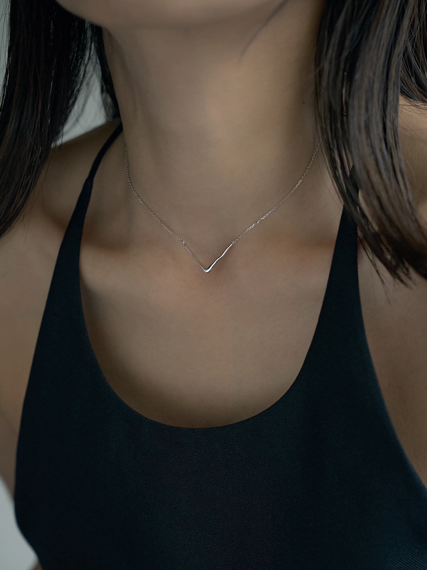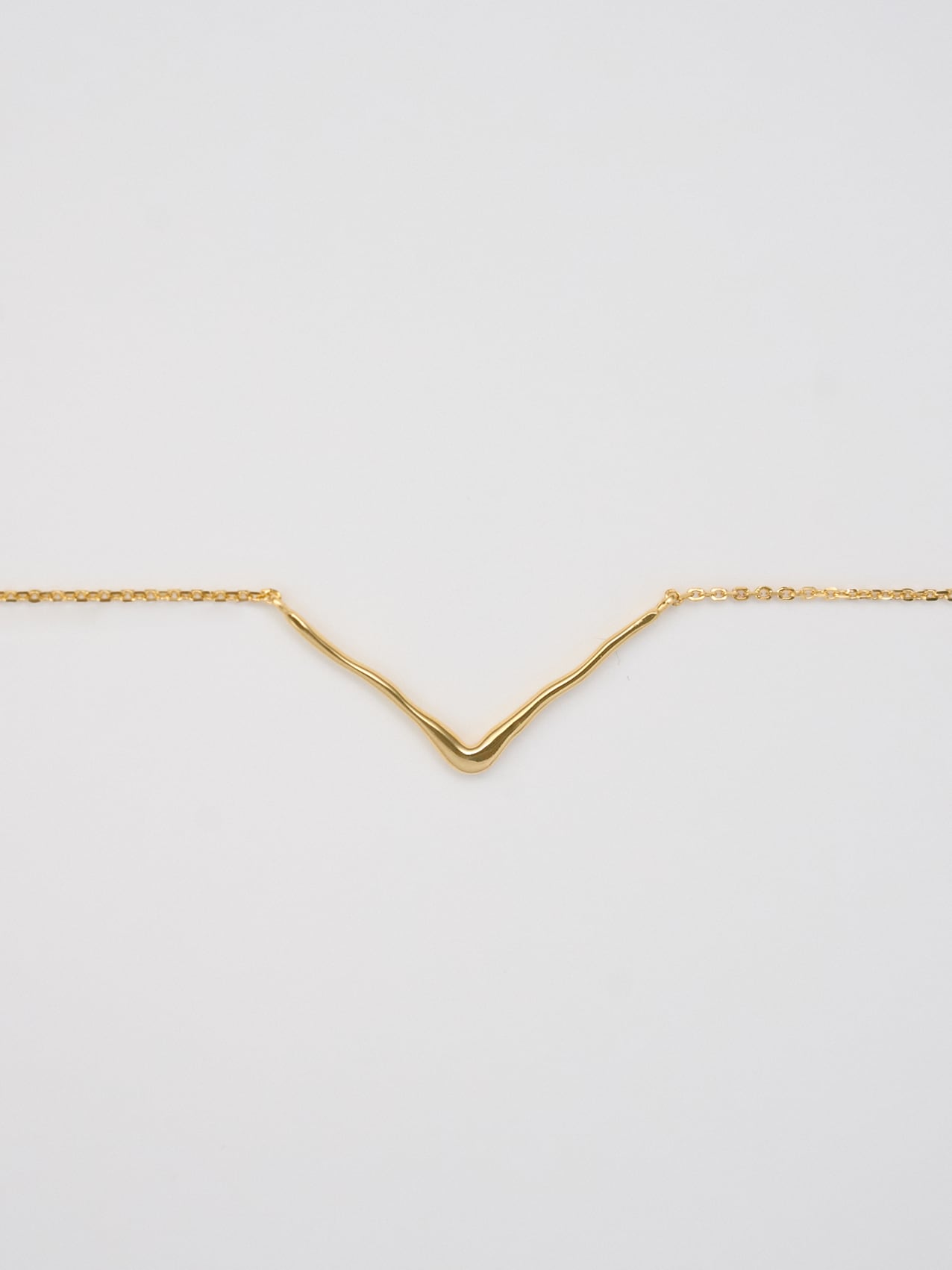 洗練されたV字ラインが首元をすっきりと見せる、ミニマルなチェーンネックレス。