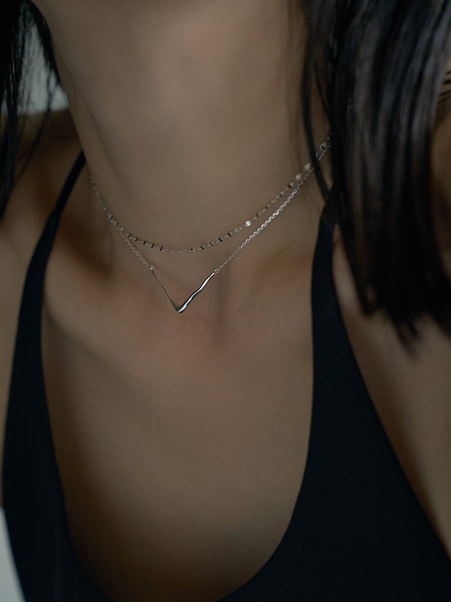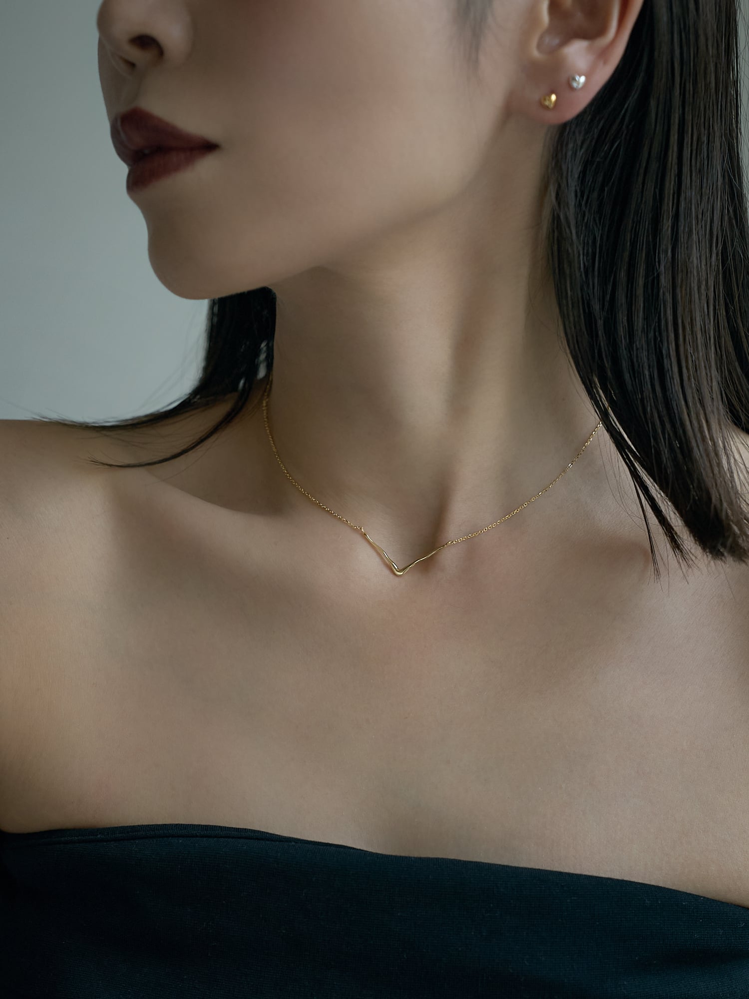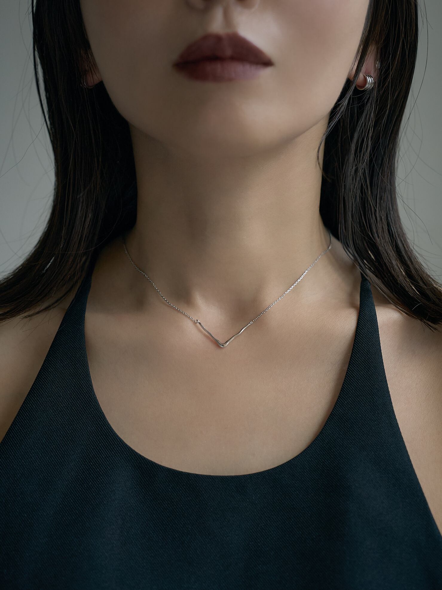 洗練されたV字ラインが首元をすっきりと見せる、ミニマルなチェーンネックレス。