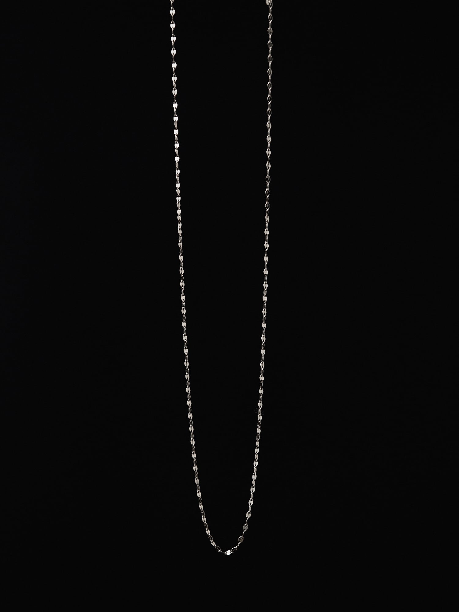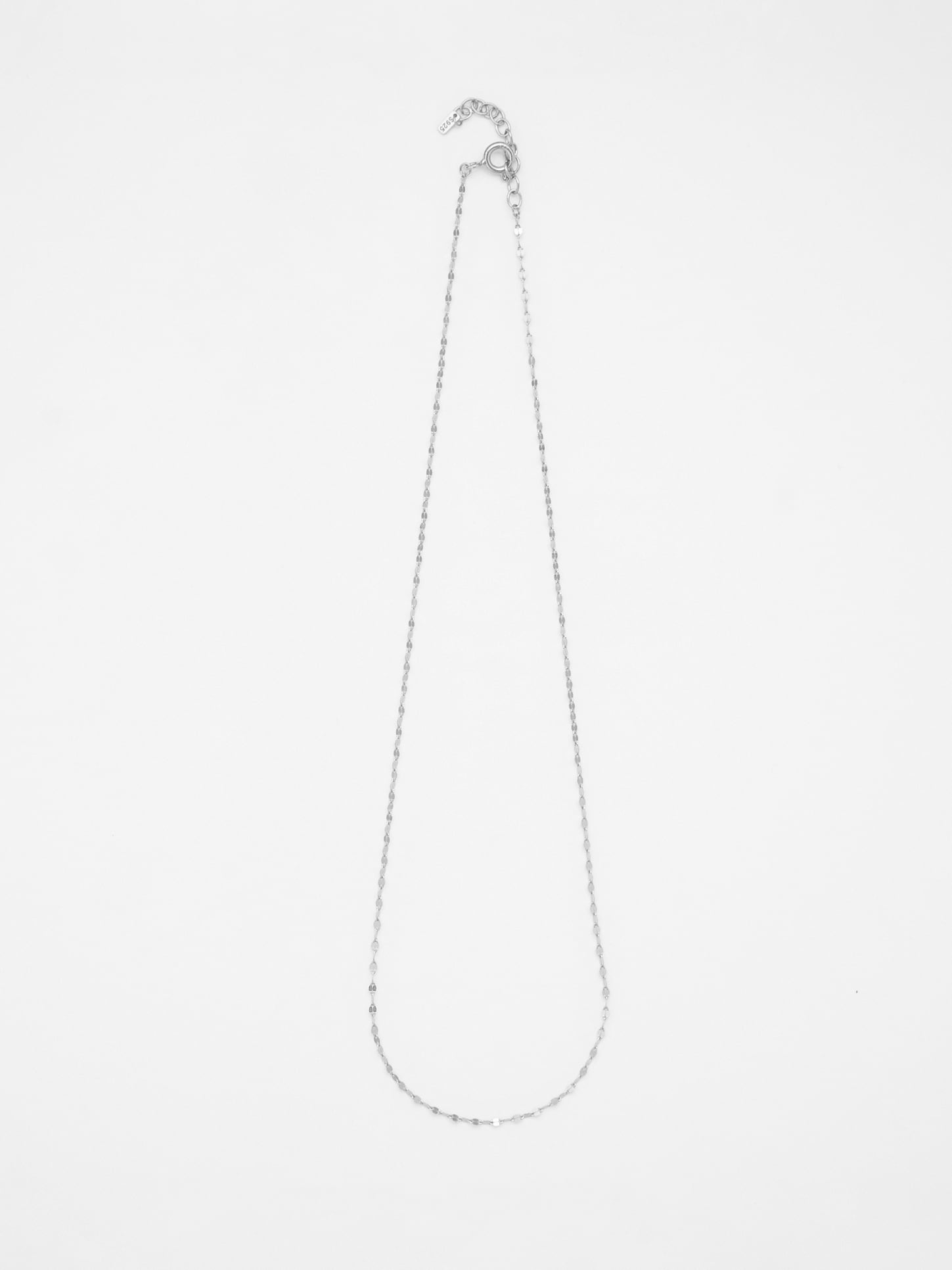 ミラーのように繊細な輝きを放つチェーンが、デコルテに上品な存在感を添えるネックレス。