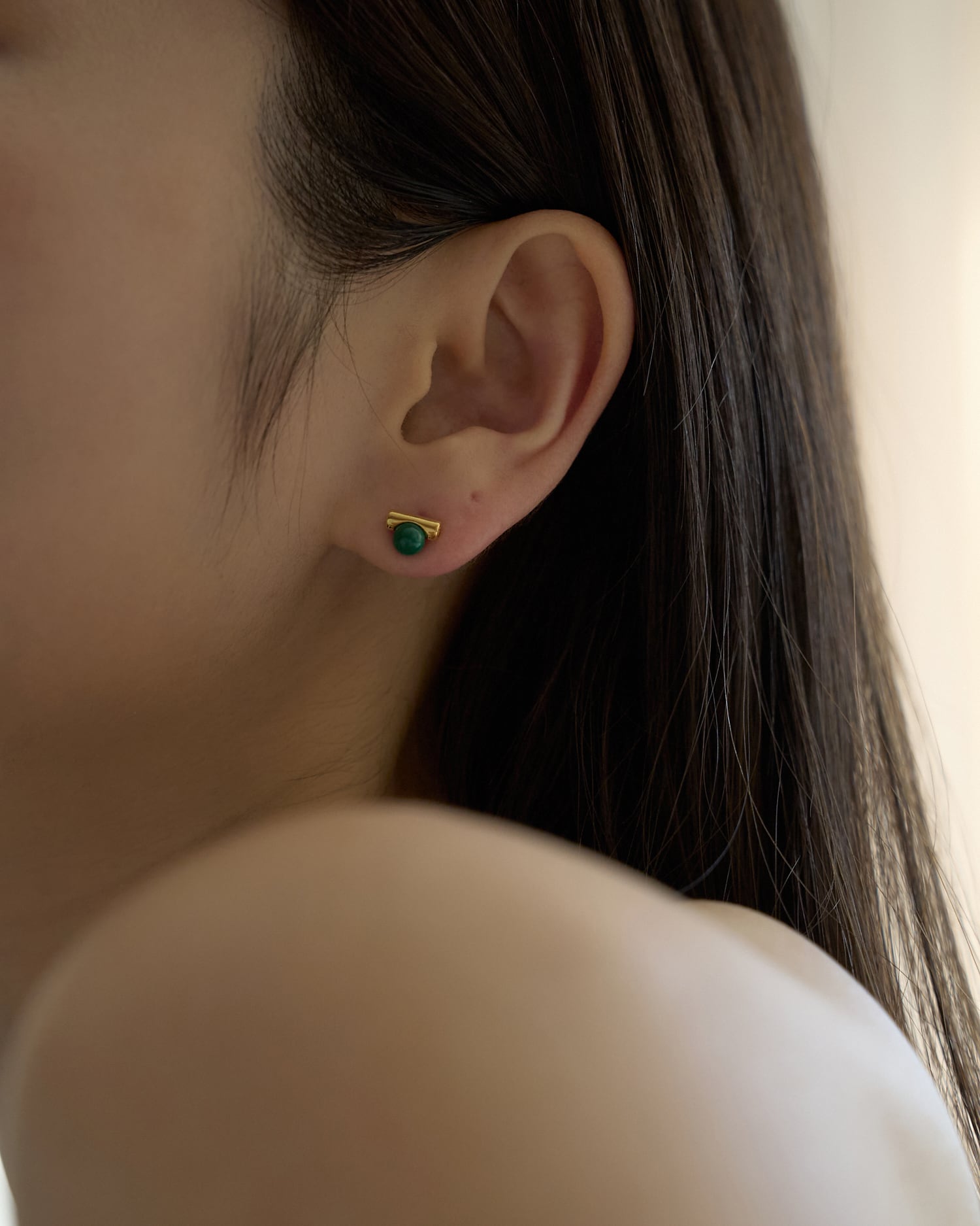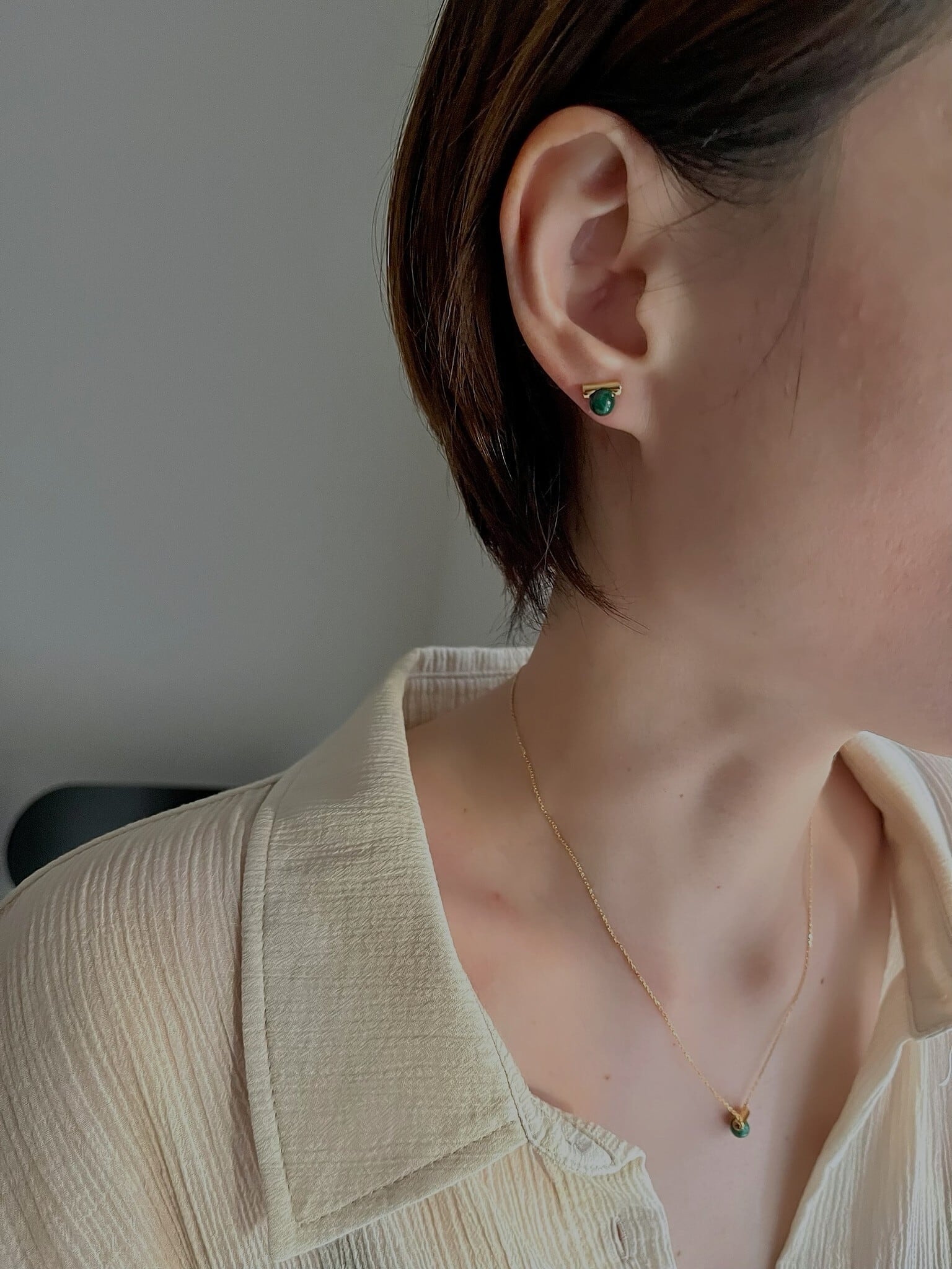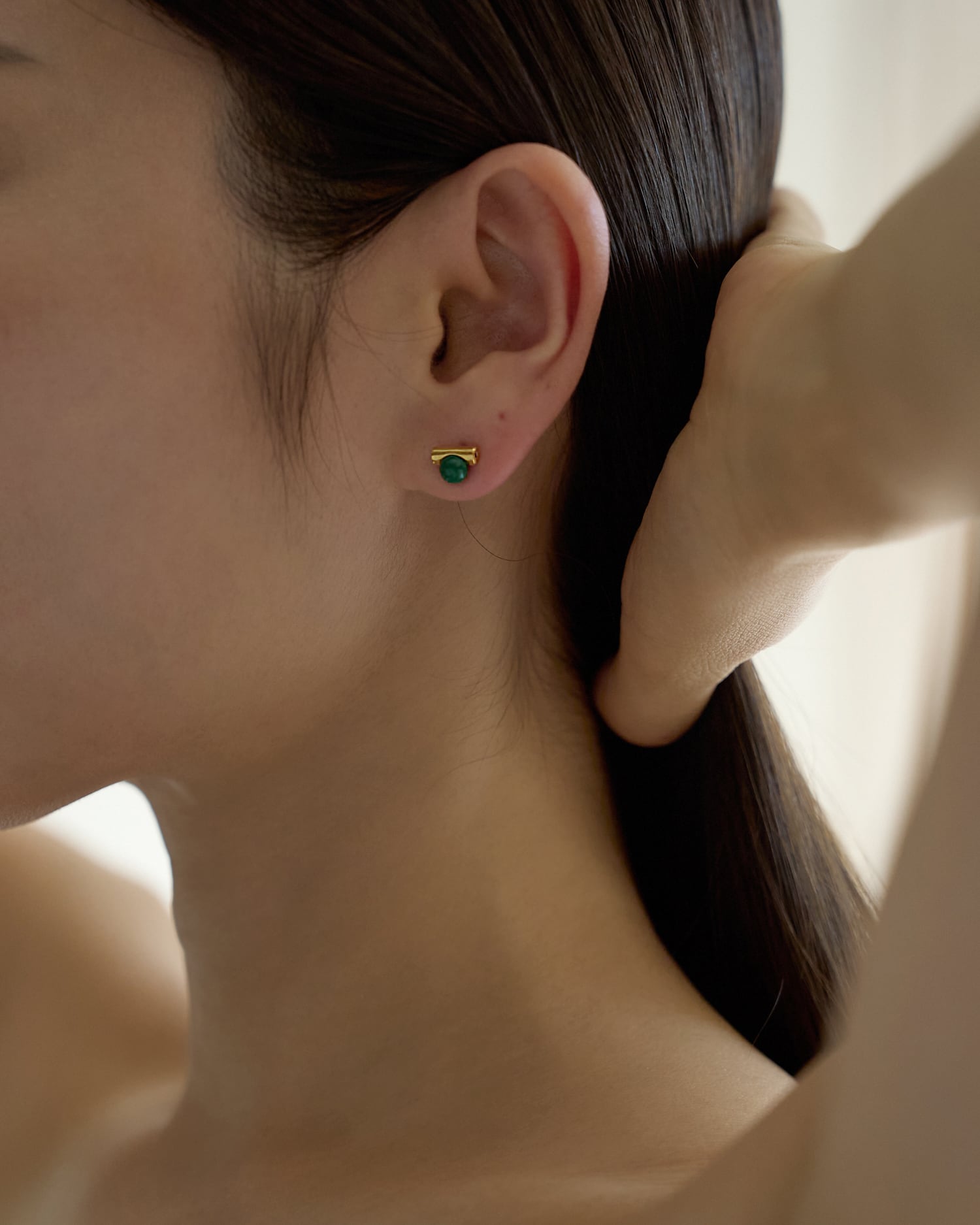 深みのあるマラカイトグリーンが耳元に上品な彩りを添えます。