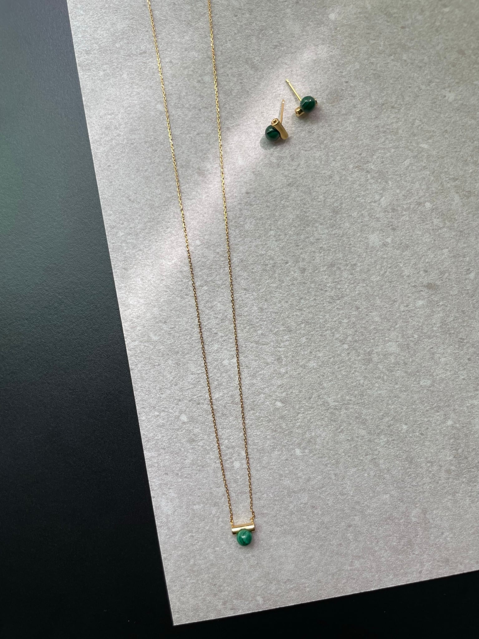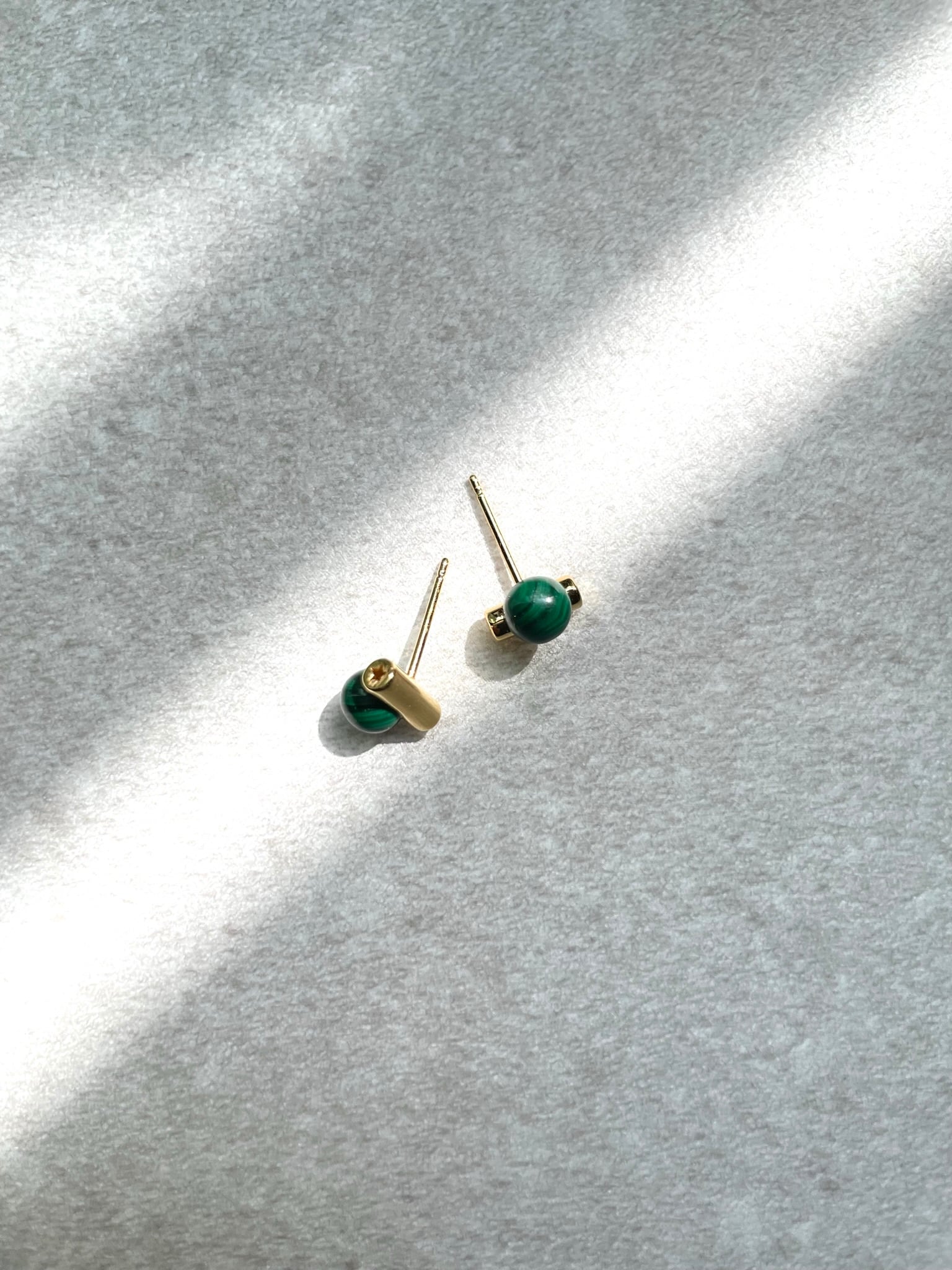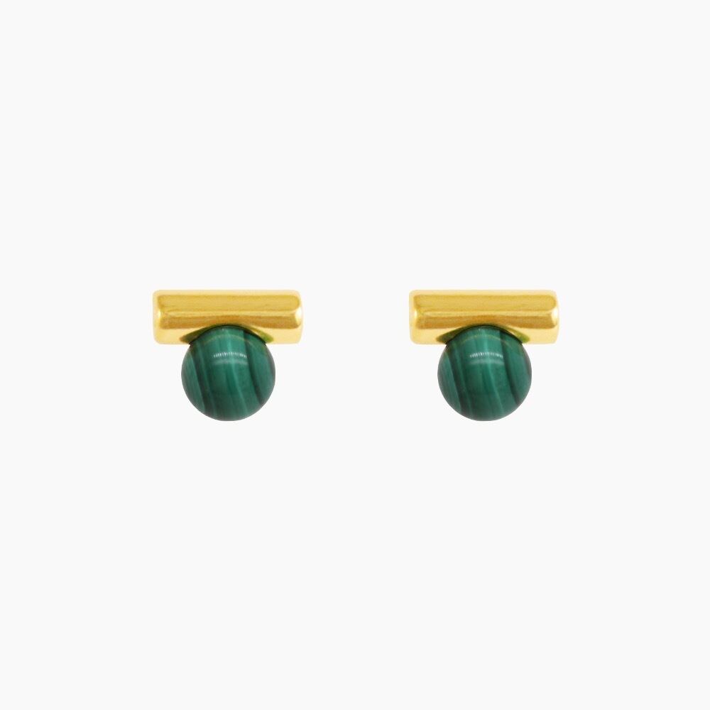 天然石のマラカイト(孔雀石)とゴールドバーの組み合わせが魅力的なピアス。