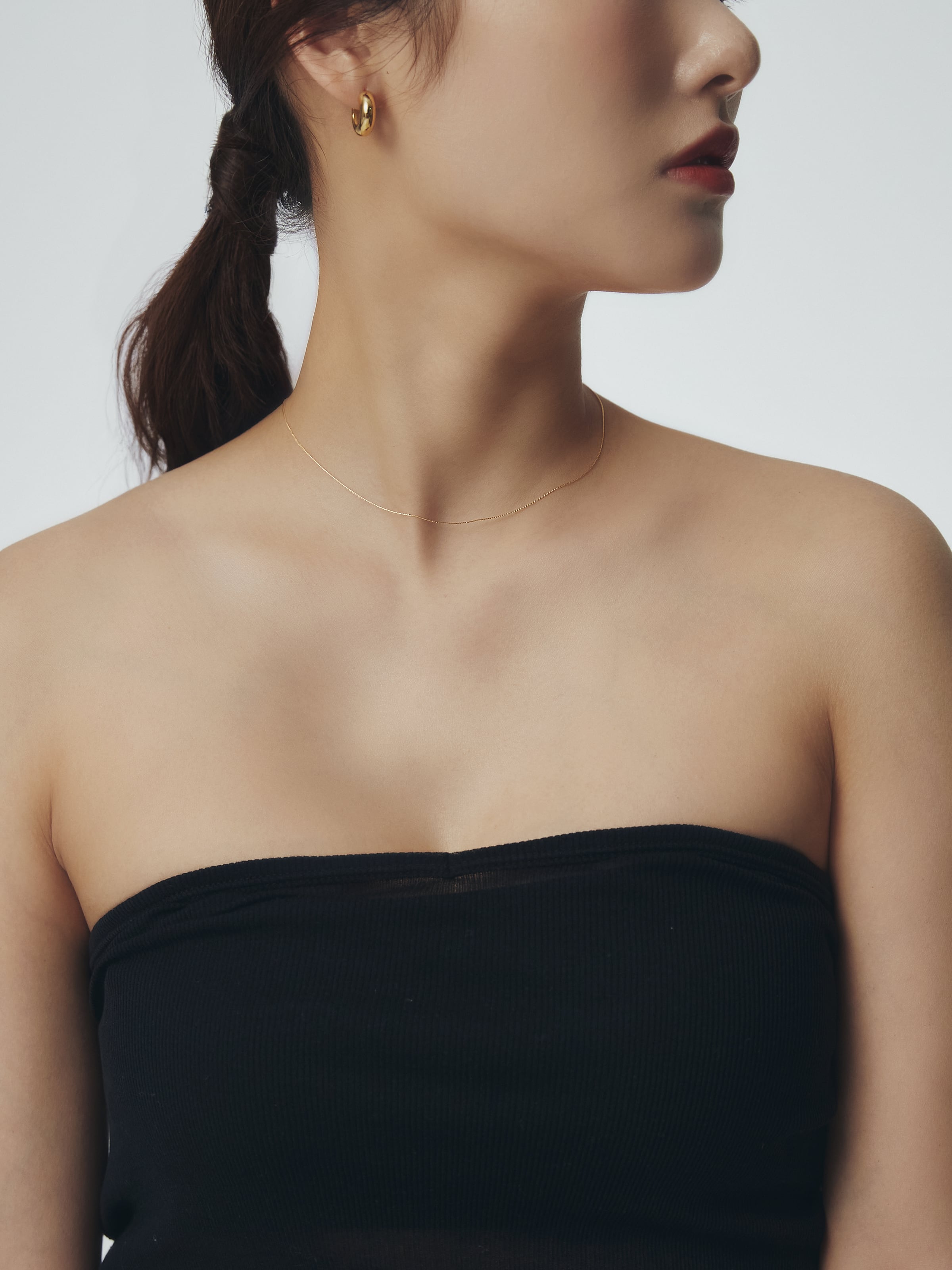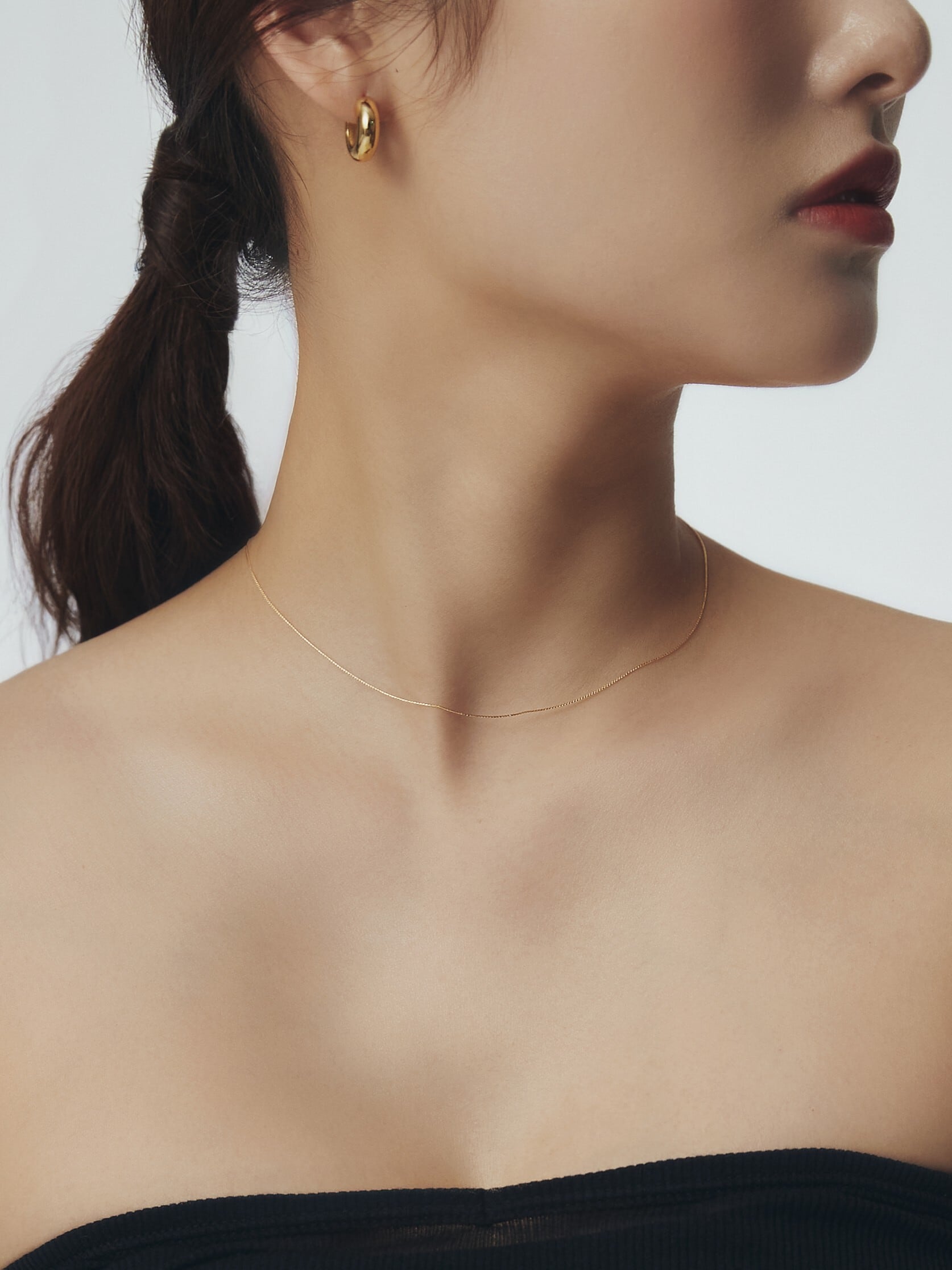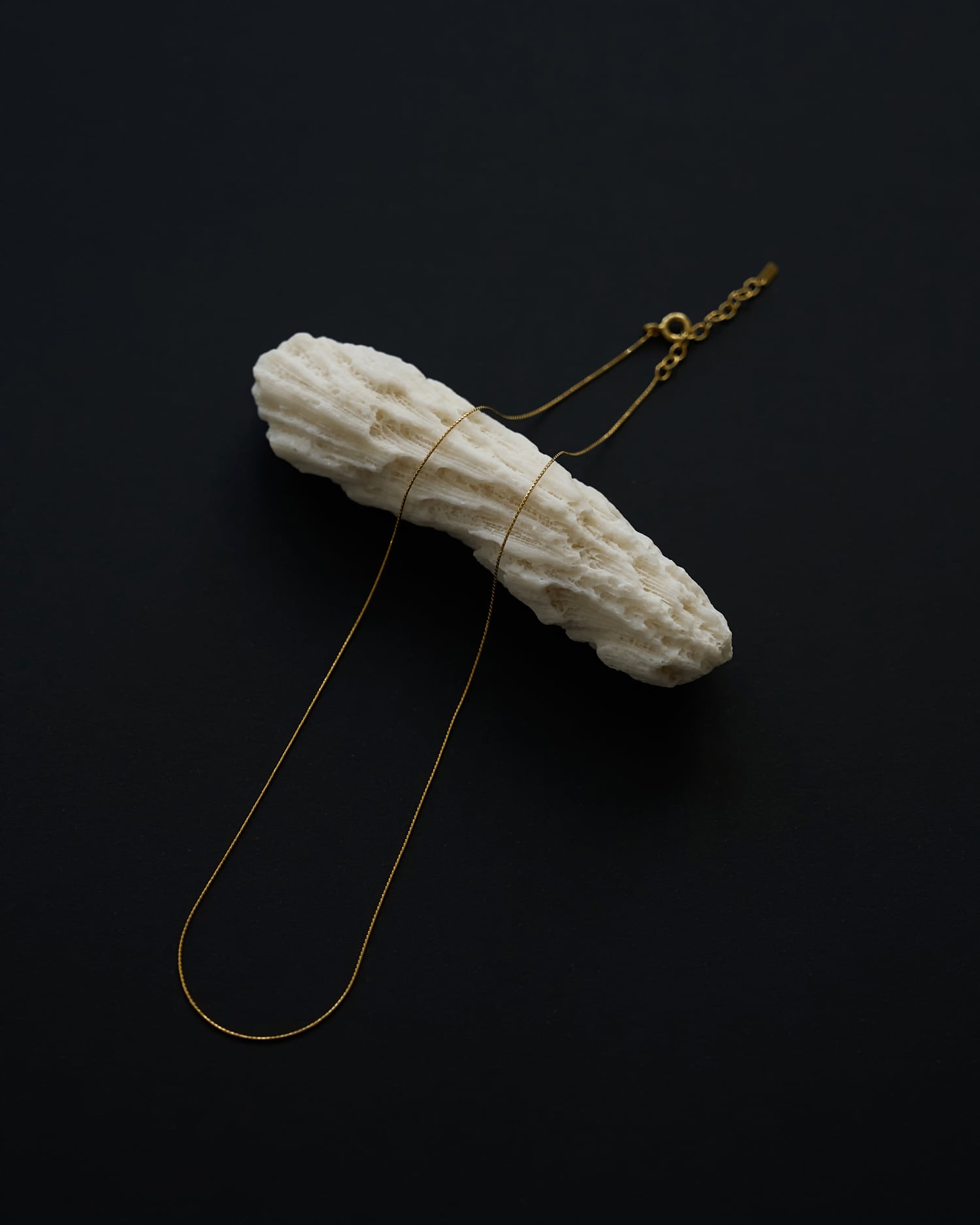細身のスネークチェーンは、肌に優しくフィットし、スキンジュエリーとしても活躍。