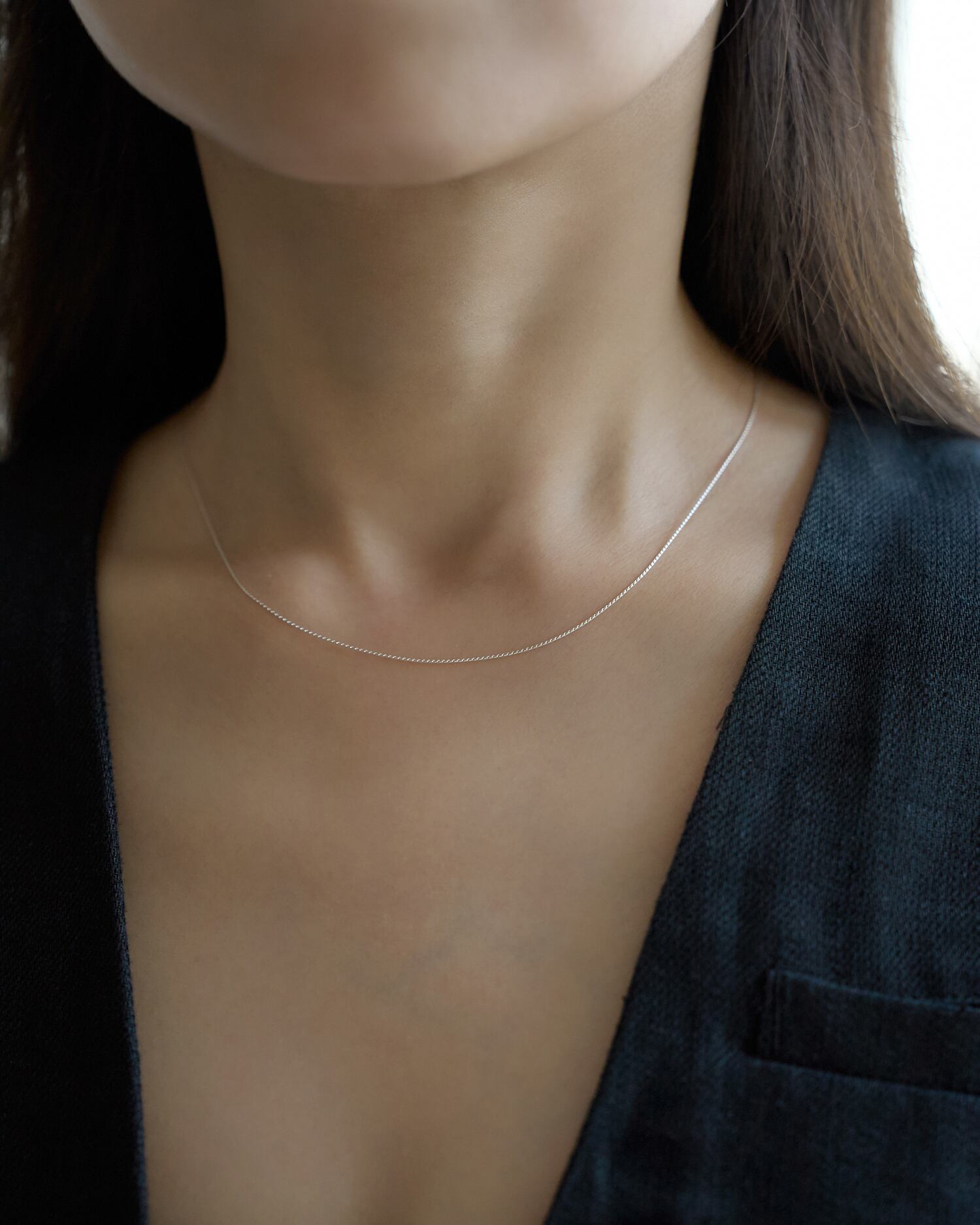 上質なイタリアンシルバーを使用した極細タイプのスネークチェーンネックレス。