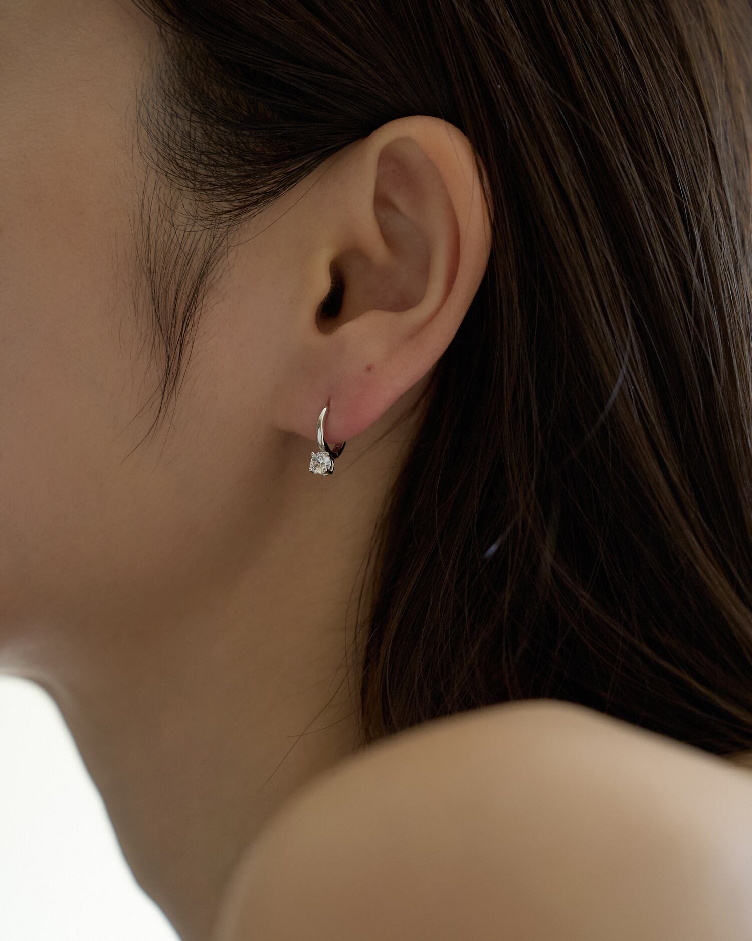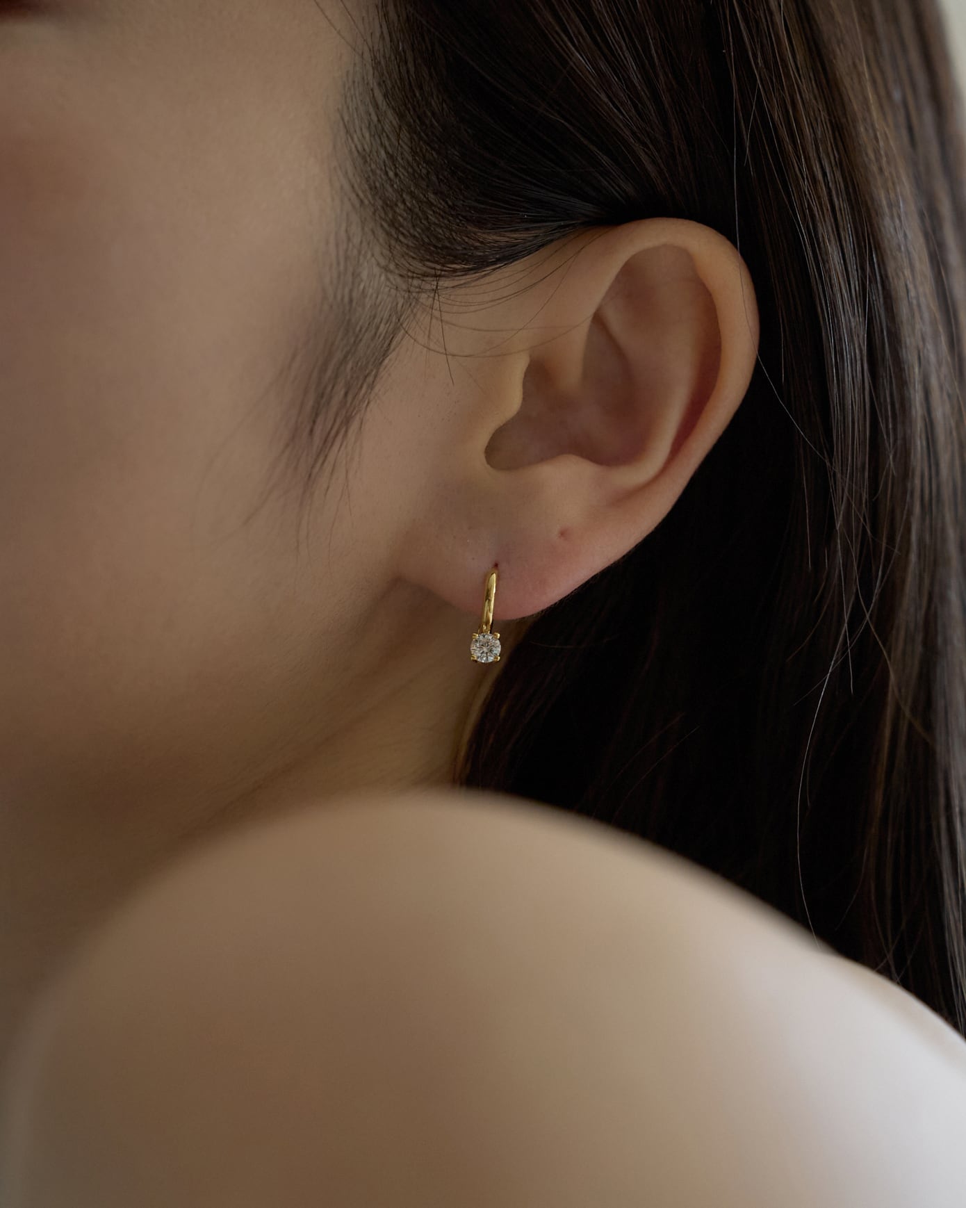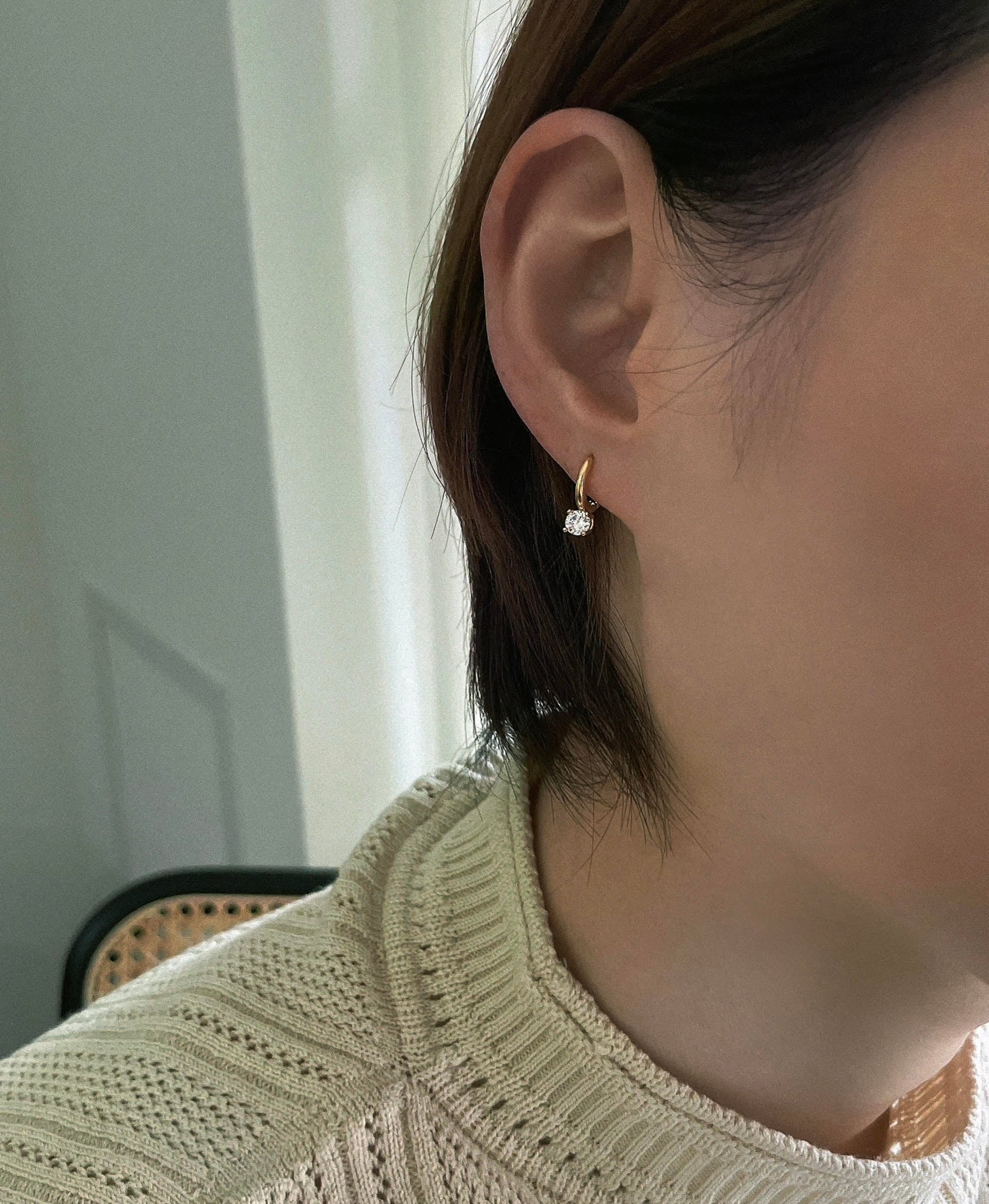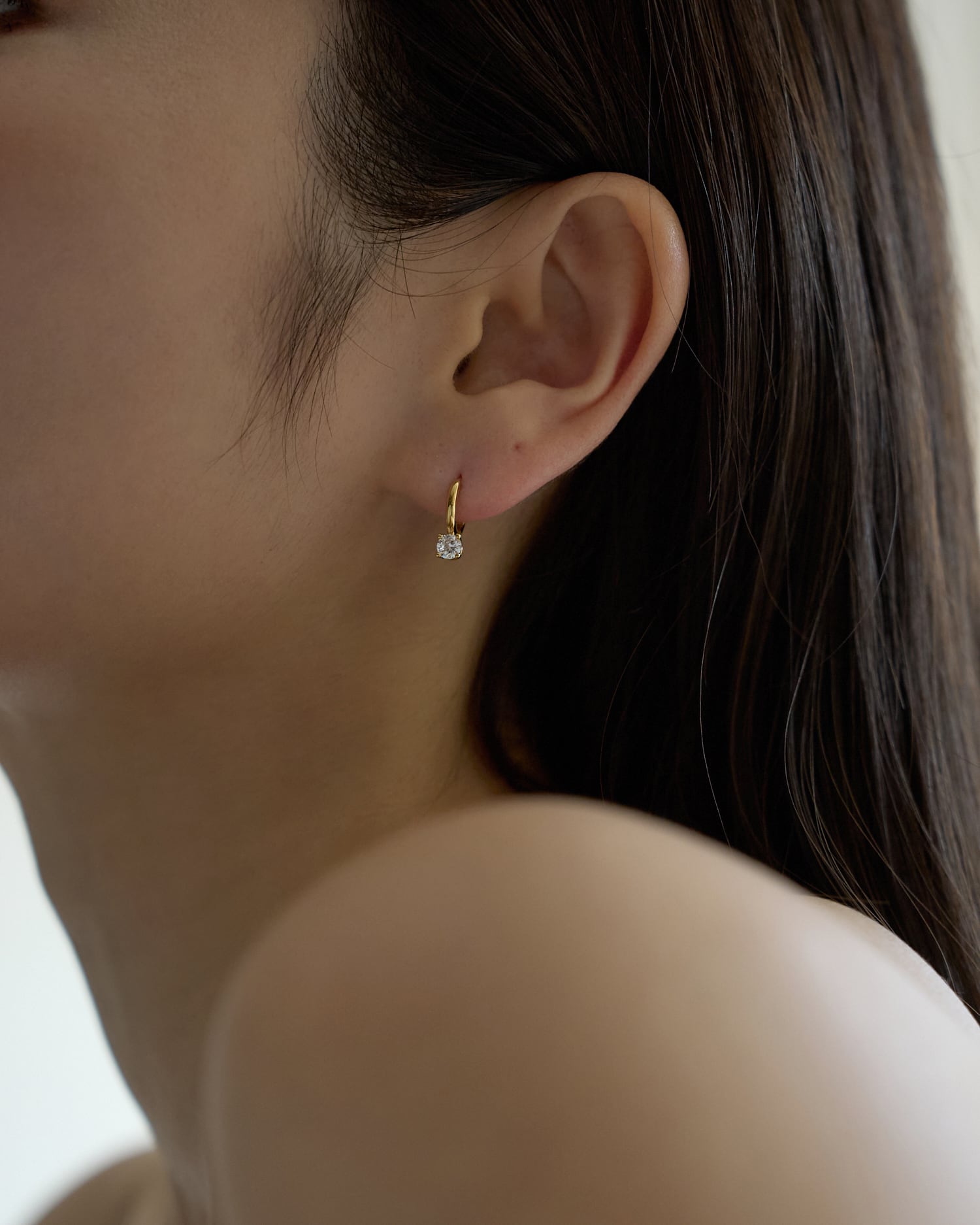 キュービックジルコニアを一粒あしらった、小ぶりなフープピアス。