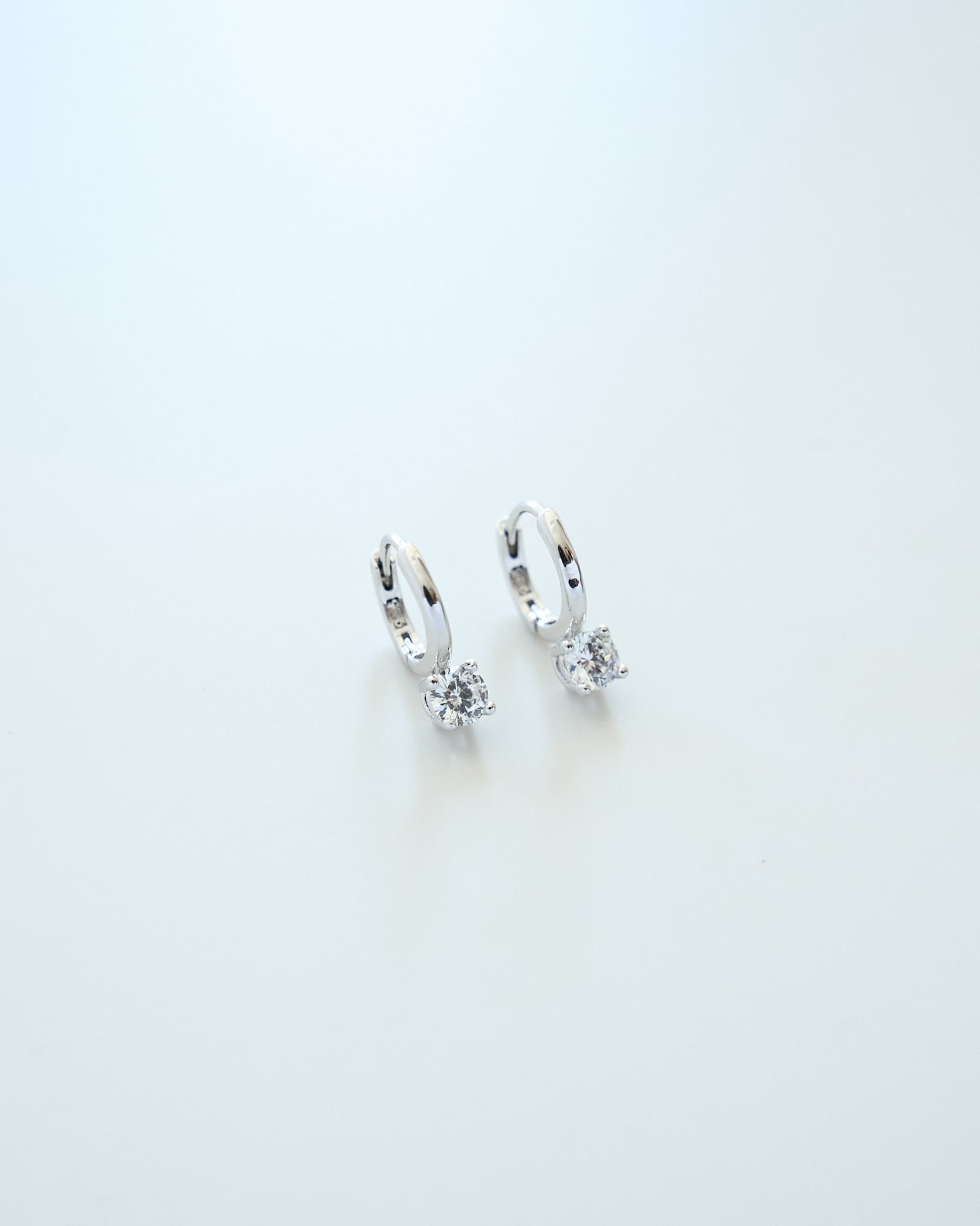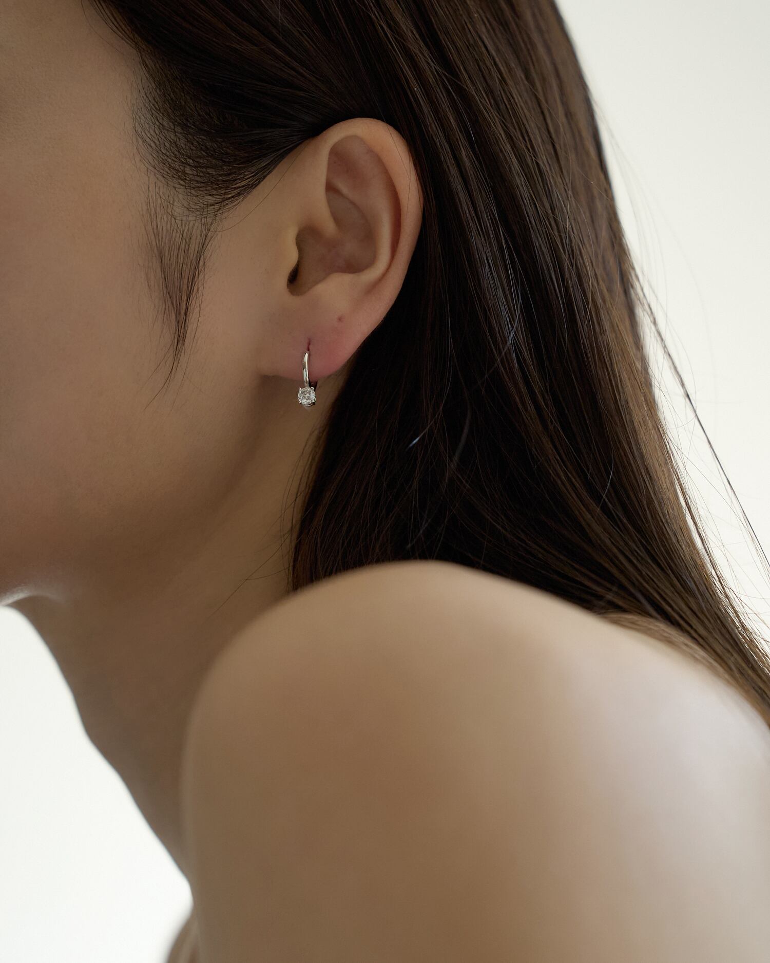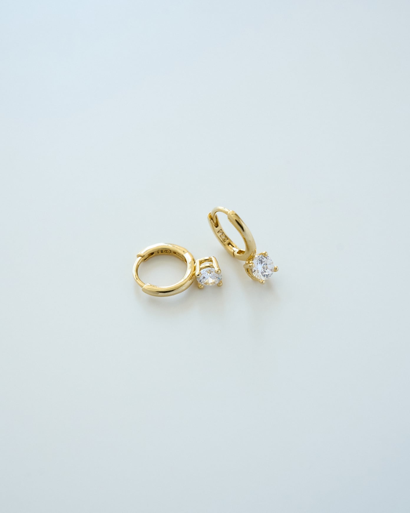 キュービックジルコニアを一粒あしらった、小ぶりなフープピアス。