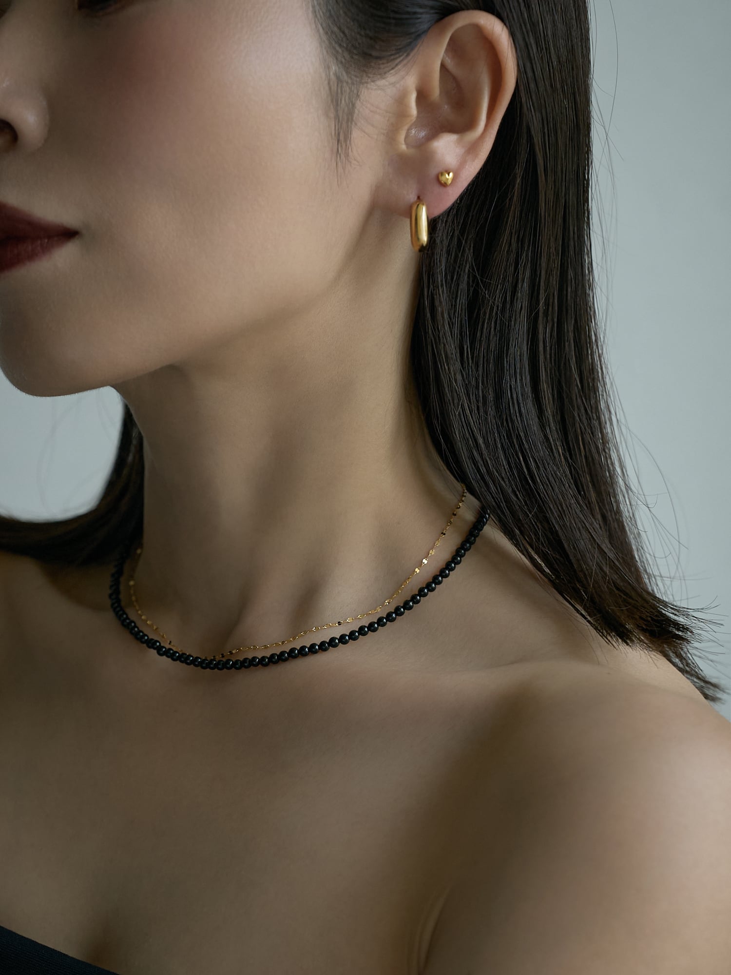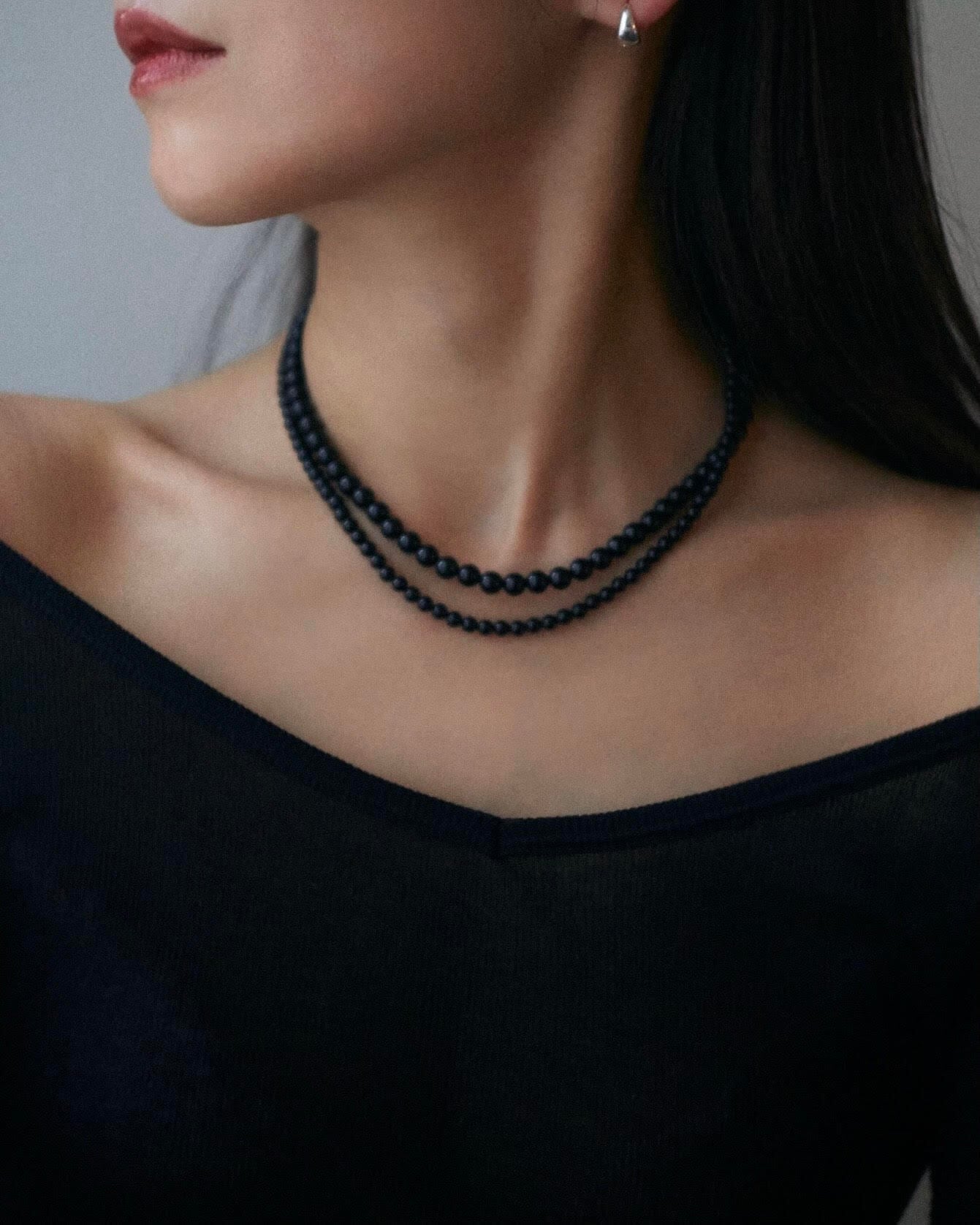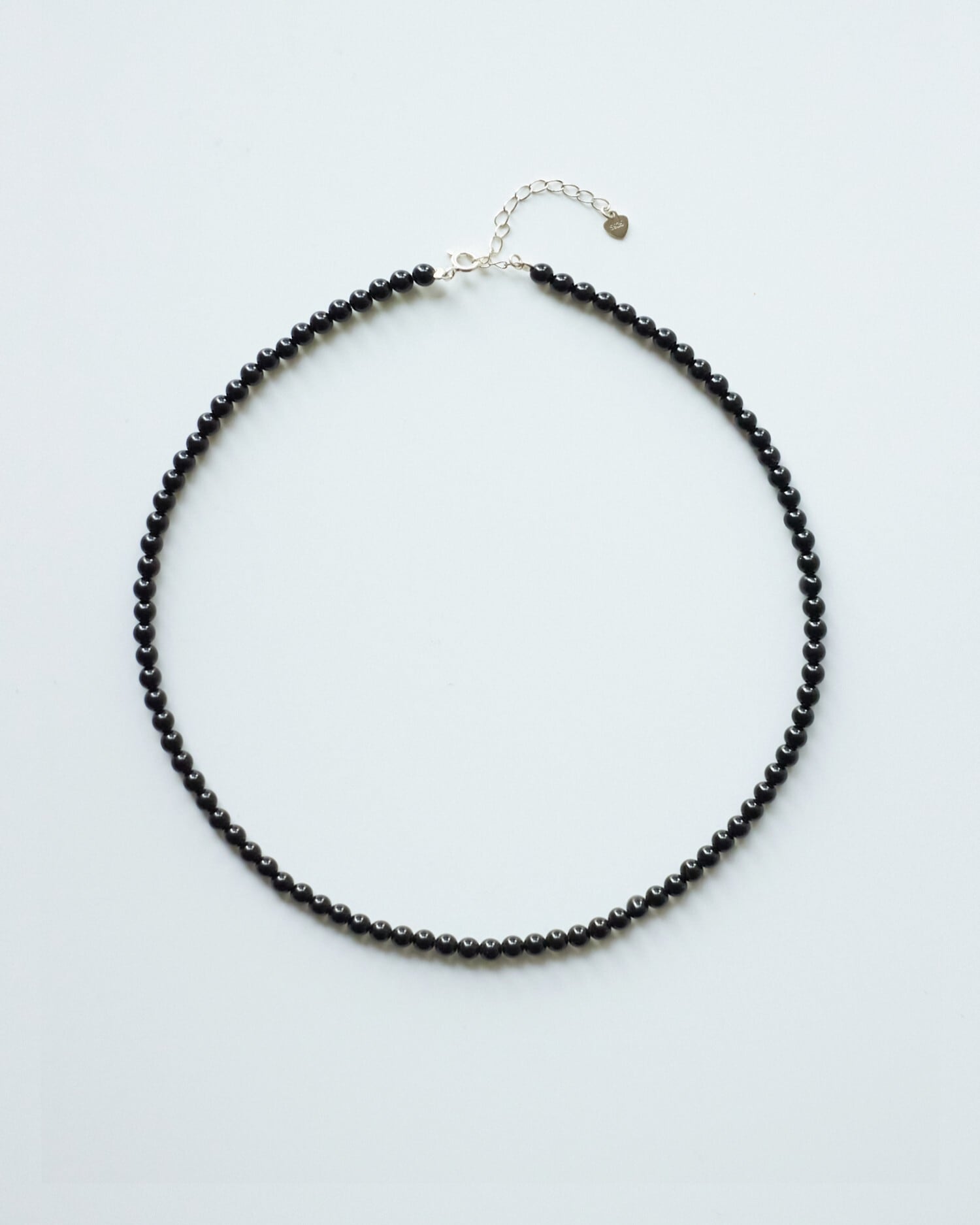 漆黒の輝きが魅力的なブラックオニキスをシンプルにあしらったボールネックレス。